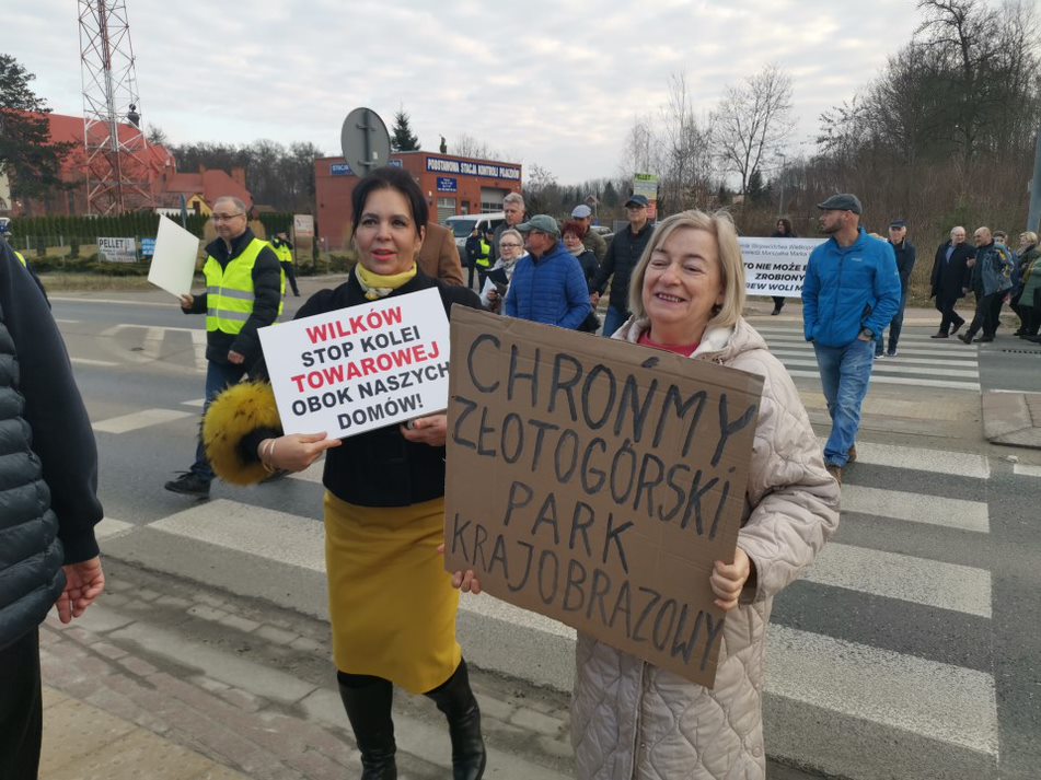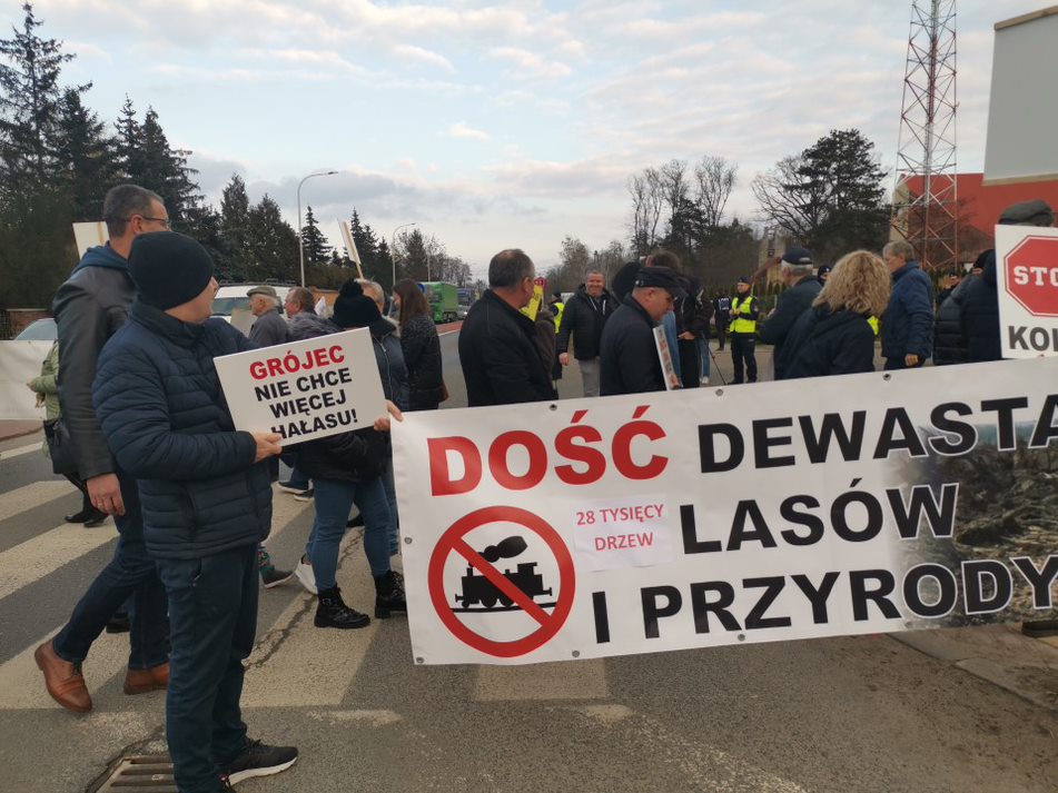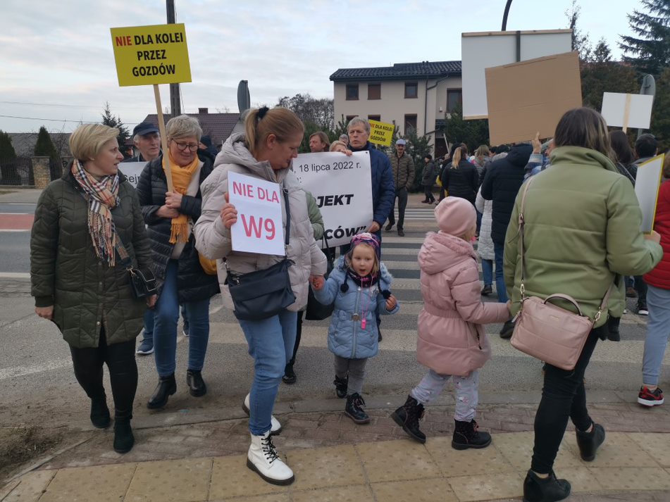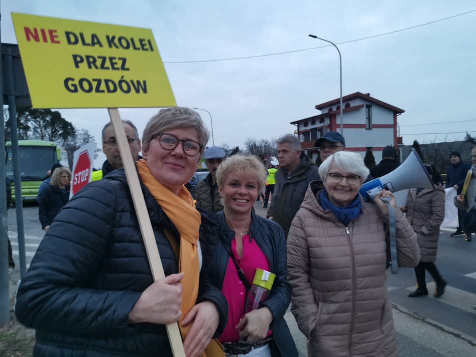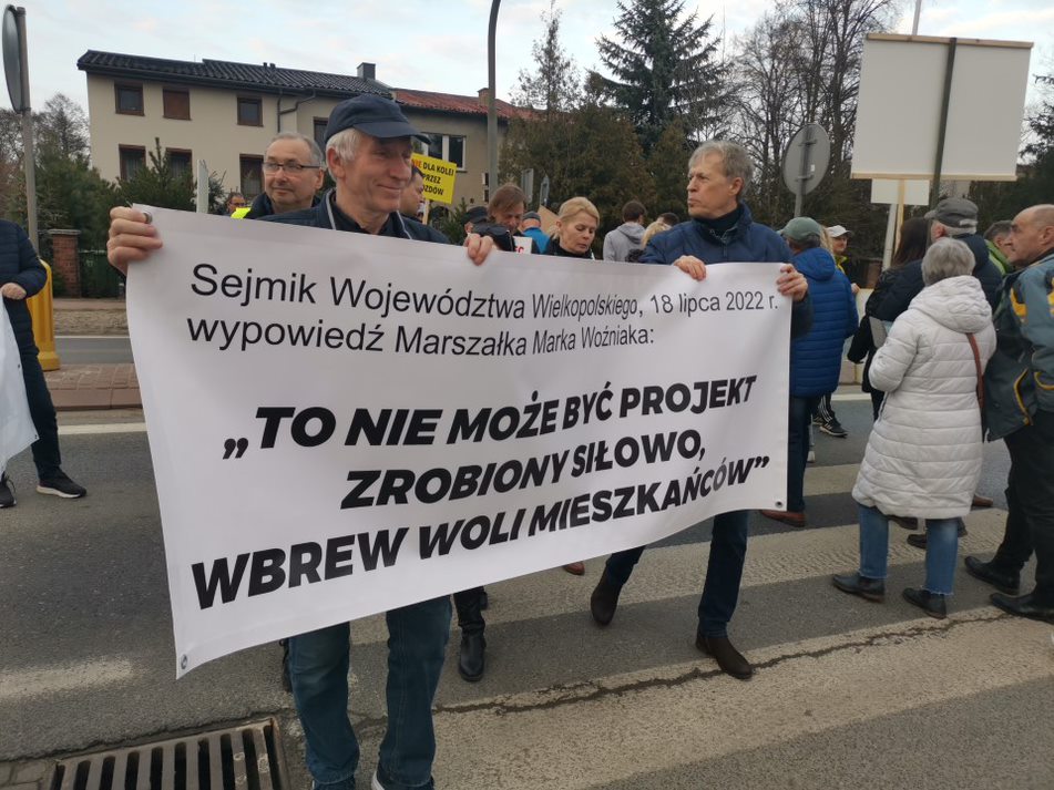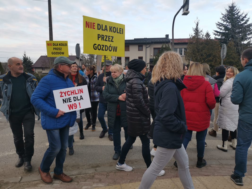Mieszkańcy kilku miejscowości znajdujących się na trasie planowanej kolei protestowali przeciwko budowie przez: Żdżary, Żychlin, Brzeźno (gm. Stare Miasto i Krzymów) oraz Wilków, Morzysław, Laskówiec, Grójec (Konin). Przeciwnicy przybyli także całym autokarem z Gozdowa w gminie Tuliszków, w powiecie tureckim. Oni też nie chcą pociągów w pobliżu domów, a jest przypuszczenie, że to będzie także ruch towarowy.