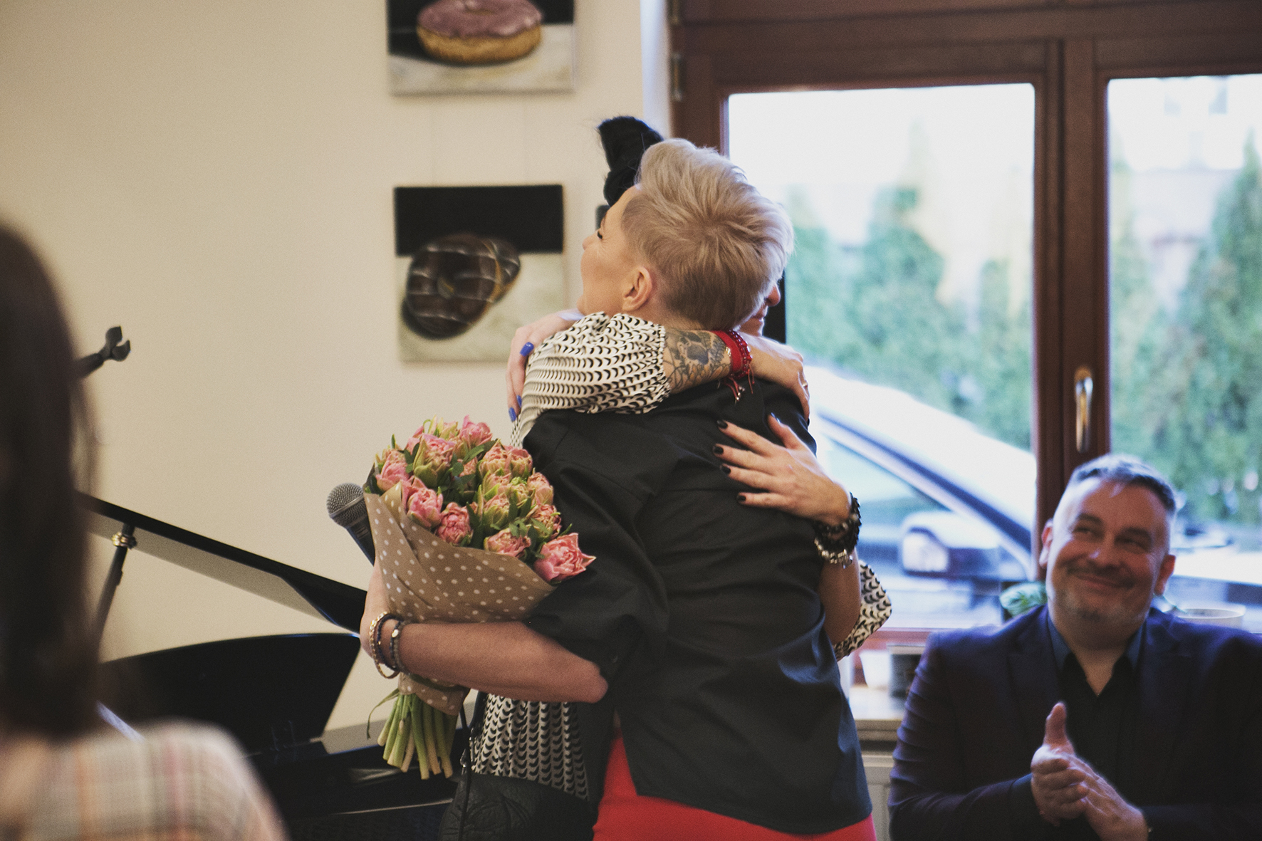 W tej części budynku znajdują się też obrazy. To miejsce na pokazywanie dzieł różnych artystów. Z fundacją współpracują już m.in. Szymon Kurpiewski (na ścianach Domu „Pomiędzy” aktualnie można podziwiać jego słodkości), Wojciech Ogorzelski – fotograf tworzący nietypowe noże, Agnieszka Piotrowska i Radek Dudziak, którego wystawę będzie można zobaczyć już w maju. – Nie ma przypadków. Każdy z tych artystów zjawiał się i po prostu był. Ten dom jest bardzo otwarty. Tu może przyjść każdy z ulicy kto jest muzykiem i zagrać na pianinie. Zapraszamy młodych ludzi z konińskiej szkoły muzycznej. Niech przyjdą, zagrają nam do kawy – mówi Monika Opielska-Gajewska. – Chcemy odczarować to, że w Koninie nic się nie dzieje. Ludzie tutaj są cudowni, wrażliwi, potrzebują takiego miejsca i my ich potrzebujemy. Niech to się wszystko zmienia. Jak mówi nasz Radziu: „Życie jest dynamiczne, niech płynie” – dodaje Paula Walczak.
