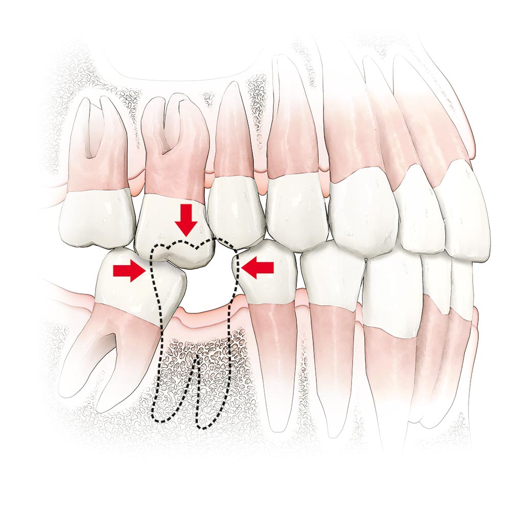 Na pierwszy rzut oka nie widać problemu, pojawia się on później. Pacjent przyzwyczaja się do luki po zębie, przestaje mu ona przeszkadzać. Często nie zdaje sobie sprawy, jakie poważne skutki niesie brak nawet jednego zęba — nie tylko estetyczne, ale również zdrowotne. W miejscu po nim zaczyna zanikać kość. Sąsiadujące zęby przesuwają się w kierunku luki i przechylają się. To nie tylko krzywy zgryz. Nieodpowiednie ułożenie zębów sprawia, że są bardziej narażone na próchnicę, przeciążenie i niszczenie. Wówczas problemem staje się też żucie jedzenia, a w konsekwencji kłopoty z układem pokarmowym.