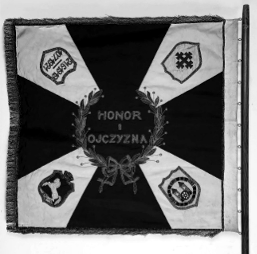 Gafa z czerwono-białymi flagami na powitanie Naczelnika Państwa