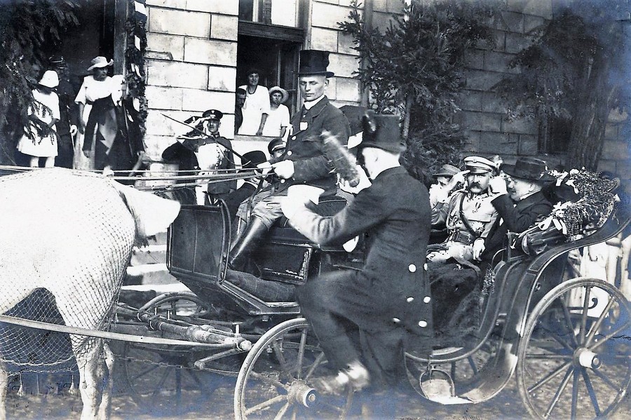 Drugie zdjęcie udostępnił mi Andrzej Majewski, kiedy dowiedział się, że piszę o wizycie marszałka w Koninie. Widać na nim Józefa Piłsudskiego w powozie na tle... baraku dworcowego (fot. 2)! Tego samego, w którym do czasu wybudowania docelowego dworca funkcjonowała kasa kolejowa oraz pomieszczenie dla podróżnych, a po wojnie przez kilkadziesiąt lat działało przedszkole. Jest to absolutnie unikalna fotografia, wykonana - co do tego nie ma wątpliwości – przez zakład Braci B. i M. Pęcherskich, który później przeszedł w ręce rodziny Sypniewskich.