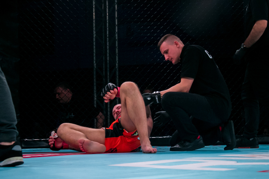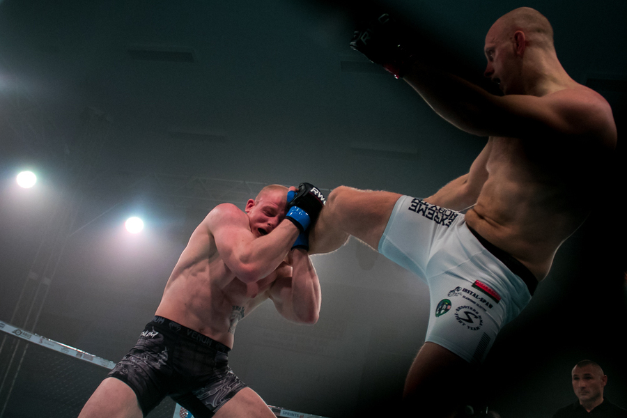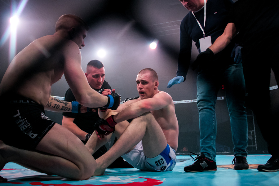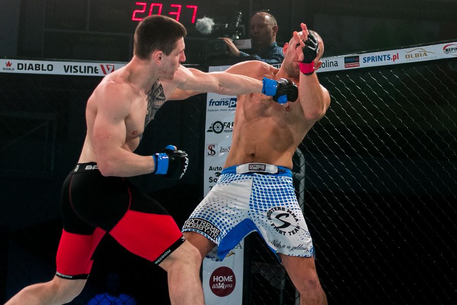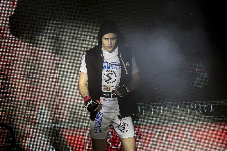 W sobotę jako pierwszy z konińskich zawodników zaprezentował się Hubert Drzyzga. Jego rywalem w kat. 77,1 kg był Mateusz Wojtkowiak. Zawodnik Shooters Konin przez większość pojedynku dominował nad swoim przeciwnikiem, szczególnie w stójce. Wydawało się, że Drzyzga ma tę walkę pod kontrolą i spokojnie swoje pierwsze zawodowe starcie wygra. Niespodziewanie jednak, w drugiej rundzie, Wojtkowiak wykorzystał moment nieuwagi i słabości Drzyzgi, zakładając mu klucz na stopę. - To nie może tak wyglądać! - krzyczał po zakończeniu walki trener Drzyzgi Ireneusz Mila. - Miałeś wygraną walkę!
