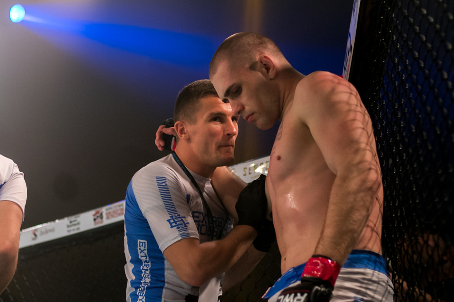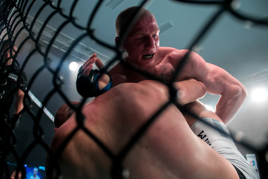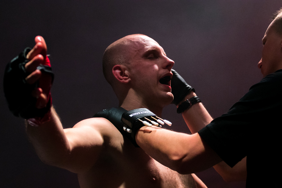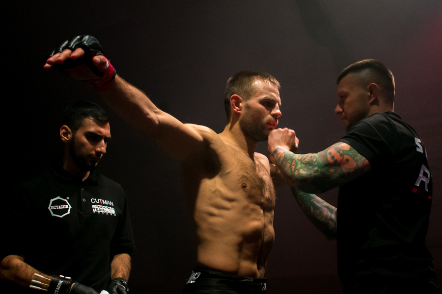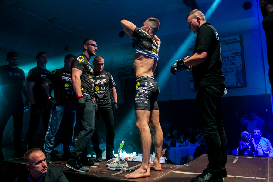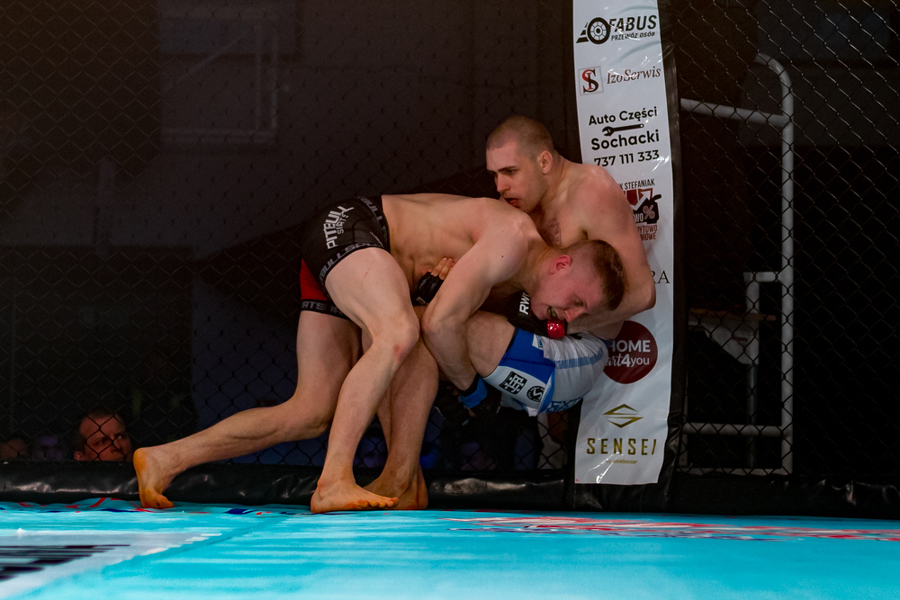 Pokonany z klatki wyszedł również drugi z koninian Dawid Stolarski. Tym razem pojedynek skończył się już w pierwszej rundzie. Po duszeniu zza pleców przez Olega Nagornego Stolarski poddał walkę po nieco dwóch minutach starcia. Wyrównany pojedynek stoczył natomiast Robert Adamczyk. W kat. 83,9 kg koninianin mierzył się z Wawrzyńcem Bartnikiem. Zawodnik Shooters Konin szukał głównie parteru, kilkukrotnie był również obalany przez swojego bardziej aktywnego rywala. Udało mu się przewalczyć całe trzy rundy, ale według sędziów w tym starciu lepszy był jego przeciwnik.