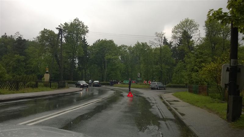 Zdarzenie miało miejsce chwilę przed godz. 14.00. Na skrzyżowaniu dróg zderzyły się dwa samochody osobowe i chociaż całość wyglądała groźnie, to na szczęście nikomu nic poważnego się nie stało. Mimo to droga krajowa nr 72 przez blisko godzinę była zablokowana, a auta poruszały się wahadłowo.