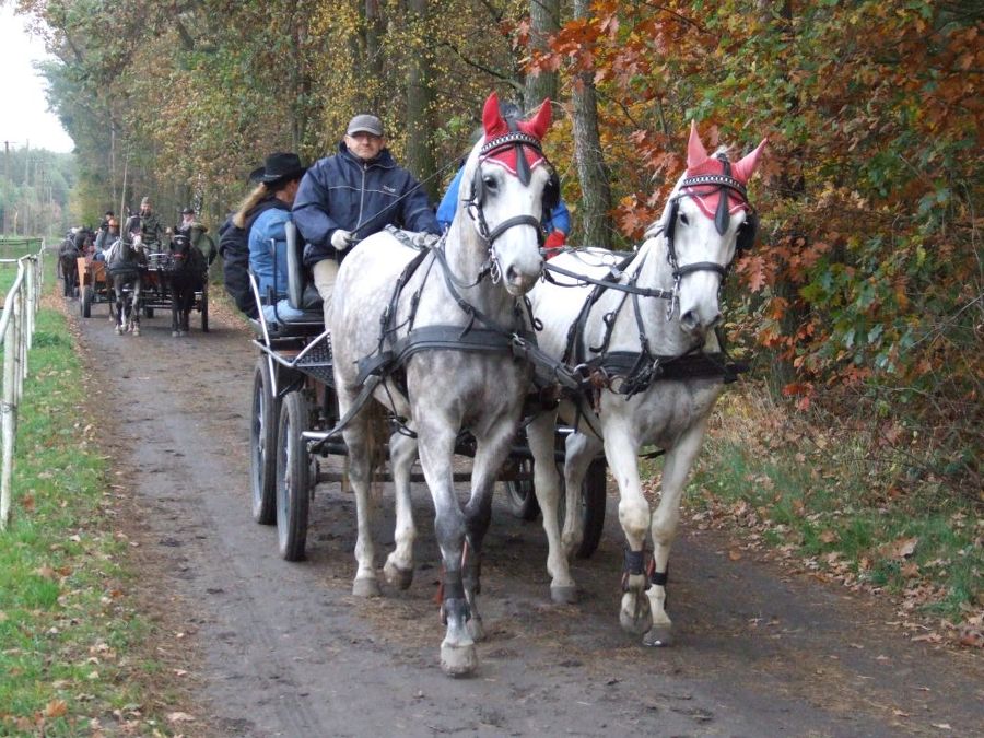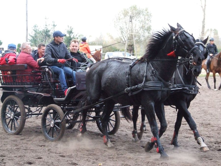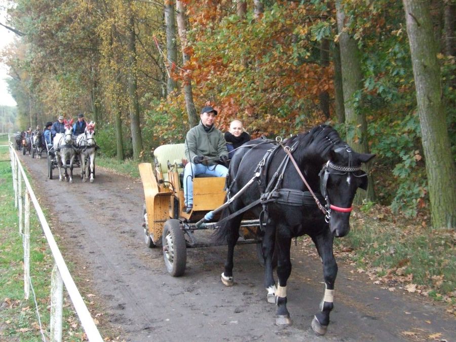 Spotkanie miłośników koni rozpoczęła przejażdżka po okolicy. Jedni jechali wierzchem, a inni bryczkami.