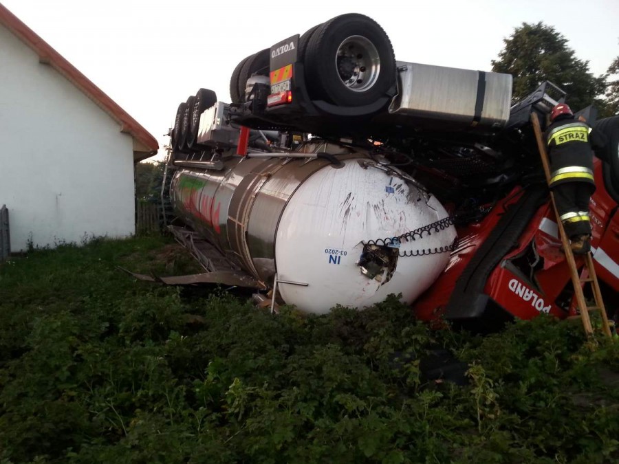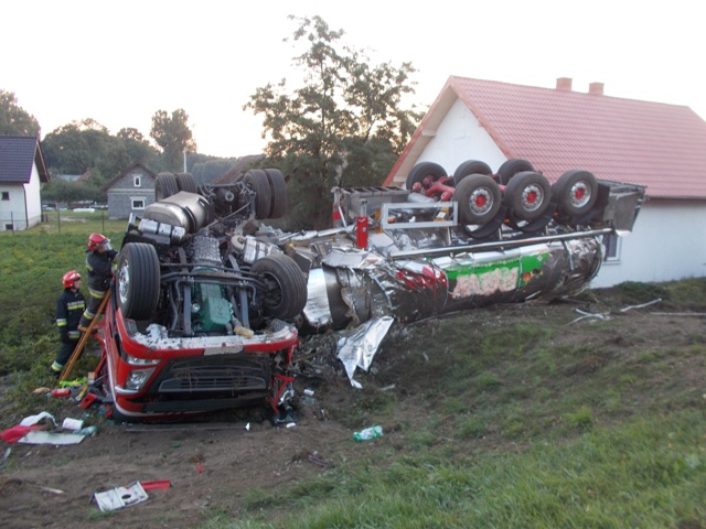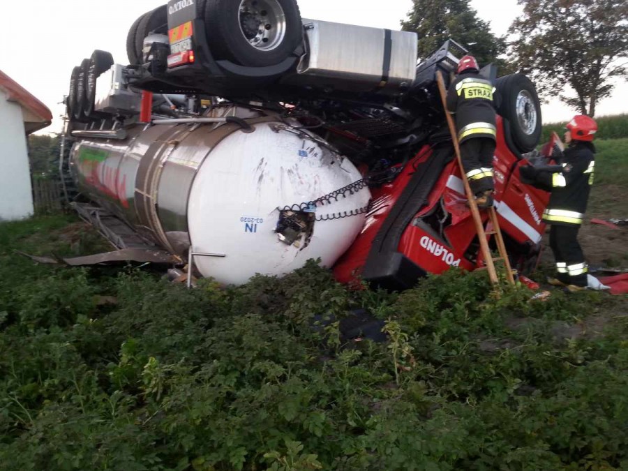 Wszystko wydarzyło się około godz. 4.30 na drodze krajowej nr 92. Kierowca samochodu ciężarowego z cysterną przewożącą koncentrat jabłkowy nagle zjechał z jezdni i wjechał do rowu. Samochód przewrócił się na dach. - Przed przyjazdem służb, kierowca zdążył opuścić pojazd. Nic mu się nie stało – mówi Sebastian Andrzejewski, rzecznik konińskiej straży pożarnej.