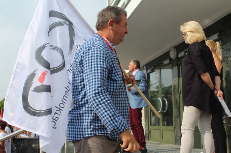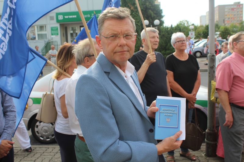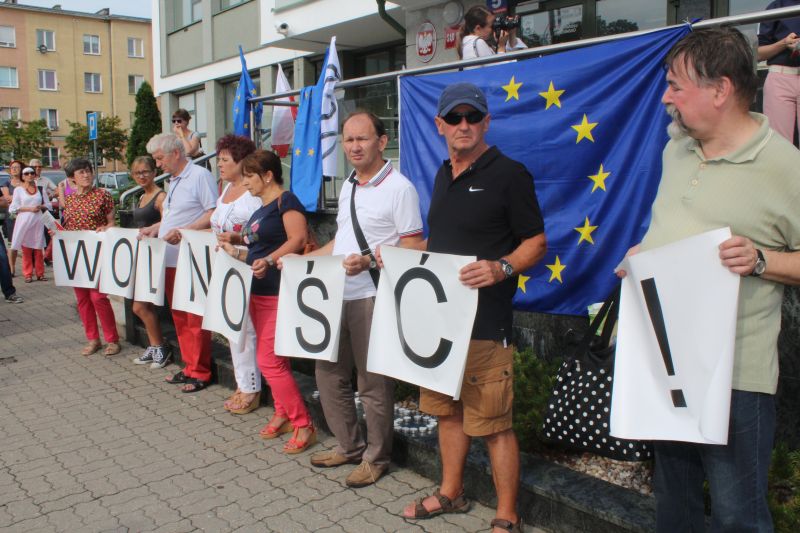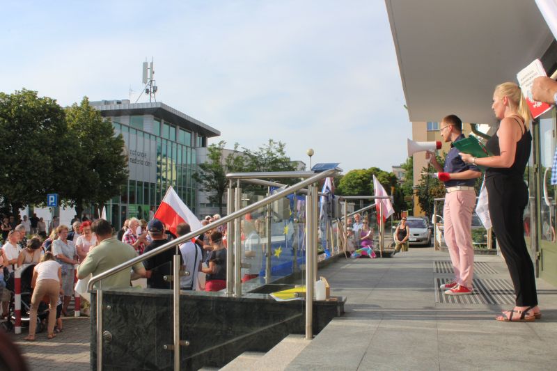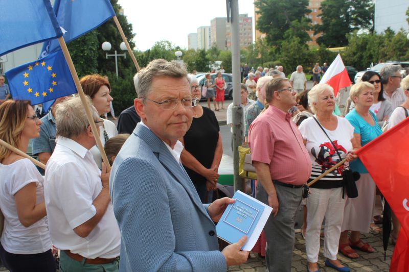 Kilkaset osób zebrało się, aby walczyć o wolne sądy, protestować przeciwko łamaniu Konstytucji przez obecną władzę firmowaną przez PiS. Obrońmy demokrację, nie pozwólmy na zamach lipcowy, uratujmy wolne sądy - to hasła, które towarzyszyły demonstrantom. O ile w czwartkowy wieczór, mieszkańcy spontanicznie wyszli przed sąd rejonowy, aby dać wyraz oburzeniu z powodu tego, co rządzący robią z sądownictwem i Ustawą Zasadniczą, organizatorem piątkowego protestu był koniński KOD. O łamaniu konstytucji mówił poseł Tomasz Nowak z PO, a demonstranci skandowali; trzy razy veto. Był to apel do prezydenta RP o zawetowanie ustaw dotyczących zmiany ustroju państwa. Zebranych nie zraziło kilku kontrmanifestantów, którzy z drugiej strony ulicy rzucali pod ich kierunkiem różne epitety. Nad porządkiem w centrum Konina czuwała jednak policja. - To sądny dzień – powiedział przed sądem Piotr Chojnacki, wieloletni prawnik, były senator. - Odwaga znów staje się w cenie. Nie bać się nigdy, to pierwsza cecha wolnego człowieka.
