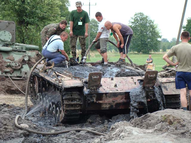 Prób wydobycia StuG-a było już co najmniej pięć. Pierwsze już w latach 50. Wojsko polskie próbowało dobrać się do wraku, ale nic z tego nie wyszło. Dwa lata temu żołnierze z Centrum Szkolenia Wojsk Lądowych w Poznaniu i eksploratorzy z Towarzystwa Przyjaciół Sopotu dwukrotnie usiłowali wyciągnąć z dna rzeczki wrak. Ale śruby puściły i w rękach miłośników militariów została tylko wieża, która po rekonstrukcji trafiła do Muzeum Wojska Pancernych w Poznaniu. Tym razem, dzięki pomocy nurków z firmy gazowniczej PBG, zakopane w mule podwozie udało się wreszcie uwolnić. Po wielu godzinach wymywania sprężonym powietrzem mułu spod wraku, w piątek rano podjęto pierwszą próbę wydobycia. Stalowe liny podłączone do wojskowego wozu zaopatrzenia technicznego naprężyły się i... StuG ruszył!