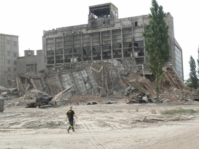 Tuż przed godziną osiemnastą powietrzem wstrząsnęła detonacja kilkudziesięciu, pieczołowicie rozmieszczonych przez specjalistów, ładunków wybuchowych. Podobnie jak 18 kwietnia i tym razem przygotowaniem wyburzenia komina zajęli się naukowcy z krakowskiej Akademii Górniczo-Hutniczej.
