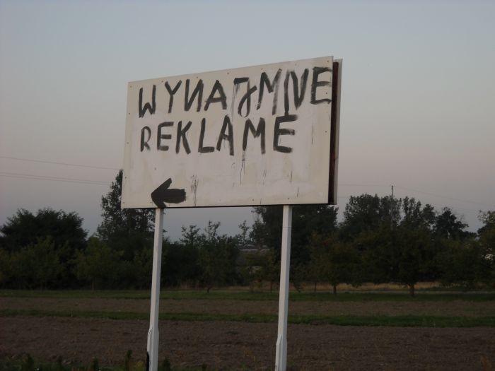 Pisownia i estetyka raczej nie zachęca do zainteresowania się miejscem na ewentualną reklamę przy drodze. Nie przynosi to chwały gospodarzowi i szpeci okolice ruchliwej trasy. Z powodu błędnej pisowni stało się raczej antyreklamą.