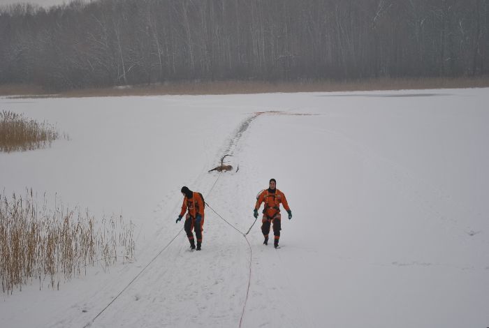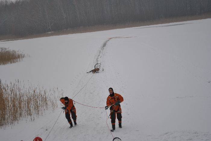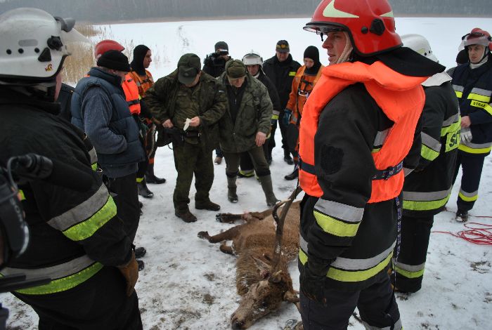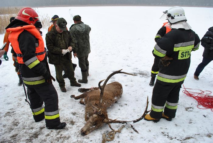 Zanim dojechali przedstawiciele Straży Leśnej, zwierzę zdechło. Wstępne oględziny wskazują na to, że jeleń miesiąc, a może dwa miesiące temu został potrącony przez samochód. Później ranne zwierzę chodziło po lesie, gdzie było podgryzane przez lisy i psy. W końcu najprawdopodobniej spłoszony jeleń wszedł na zamarznięte jezioro, z którego nie umiał się wydostać. Był wygłodzony, wycieńczony i miał złamaną nogę. - Zrobimy sekcję i sprawdzimy, czy ktoś do niego nie strzelał. Jeśli tak to będziemy dochodzić kto to mógł być – tłumaczy Henryk Lewandowski, strażnik leśny.