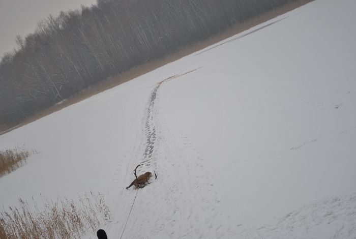 Nie udało się uratować jelenia, którego rano na środku jeziora Głodowskiego, gm. Golina zauważył przypadkowy przechodzień. Ranne zwierzę najprawdopodobniej błąkało się po okolicznych lasach przez około dwa miesiące.