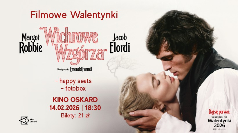 Zamiast streamingu, z super propozycją przychodzi Kino Cafe, które rozgrzeje zakochanych Filmowymi Walentynkami. „Wichrowe wzgórza” w reżyserii Emerald Fennell to odważna i oryginalna wersja jednej z największych historii miłosnych wszech czasów możecie obejrzeć film podczas Walentynkowego weekendu w Kino Cafe (CKiS Dom Kultury „Oskard” w Koninie). Wszystkich zachęcamy także do robienia romantycznych fotek! Przez cały weekend będzie czekał na Was nasz walentynkowy FOTOBOX i specjalny zestaw dla dwojga Love Story dostępny w promocyjnej cenie w Kino Cafe.