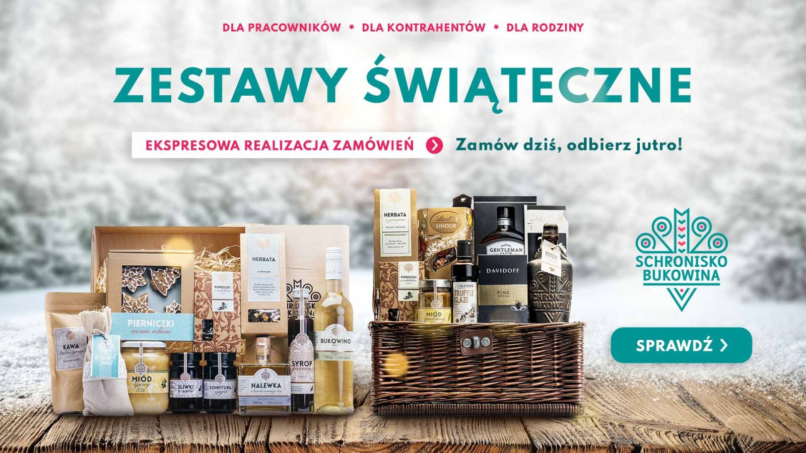 Przedświąteczny okres to szał zakupów, ale także spora ilość obowiązków. Bywa, że zwyczajnie brakuje nam czasu na wykonanie różnego rodzaju zadań - m.in. kupna upominków na święta. Jednak wybierając kosze podarunkowe dla pracowników, można zaoszczędzić sporo czasu. Dlaczego? Bo świąteczne zestawy upominkowe dostępne w sklepie online Schronisko Bukowina, są gotowym do wręczenia prezentem. Wystarczy jedynie wybrać odpowiednią kompozycję, a za kilka dni zamówienie zostanie dostarczone na wskazany adres.