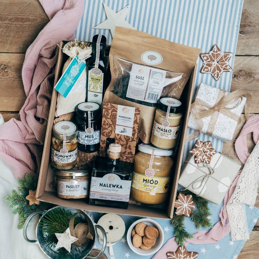 Zestawy prezentowe kryją w sobie moc smakołyków. Piękne opakowanie wypełnione jest produktami najwyższej jakości, a każdy z nich wyróżnia się nienagannym składem, pozbawionym wszelkich sztucznych dodatków w postaci konserwantów, barwników, czy zagęszczaczy. Artykuły spożywcze dostępne w koszach upominkowych dla pracowników to klasa premium, nie znajdziemy ich na sklepowych półkach. Naturalne miody prosto z pasieki, aromatyczne kawy, herbaty, syropy owocowe, konfitury, które smakują jak domowe, rozmaite słodkości oraz regionalne alkohole to coś, co warto podarować na święta swoim podwładnym.