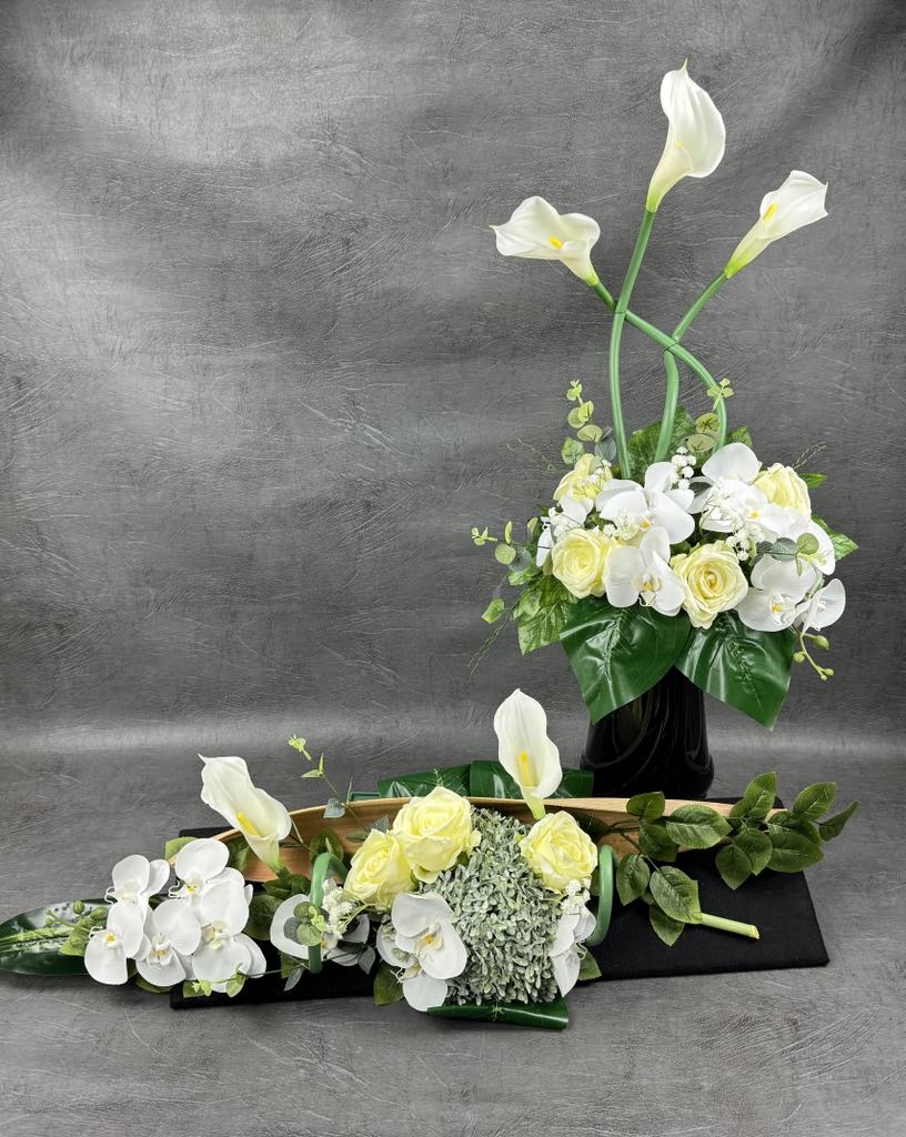 Kompletne rozwiązania – stroik, bukiet i znicz w jednym stylu