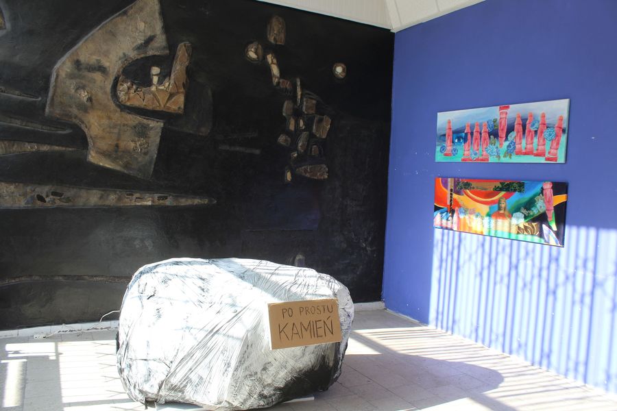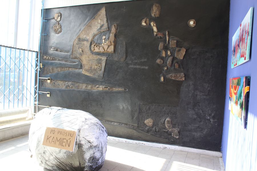 Oprócz malarstwa Ewy Gaj, jednym z eksponatów był „po prostu kamień". - To obiekt przypominający głaz narzutowy, których w Koninie jest mnóstwo – wyjaśnia Ewa Gaj. - To kamień węgielny pod dyskusję dlaczego to miasto jest umajone tymi głazami, które wcale nie są specjalnej urody. Głaz plus tabliczka nie może robić za rzeźbę.
