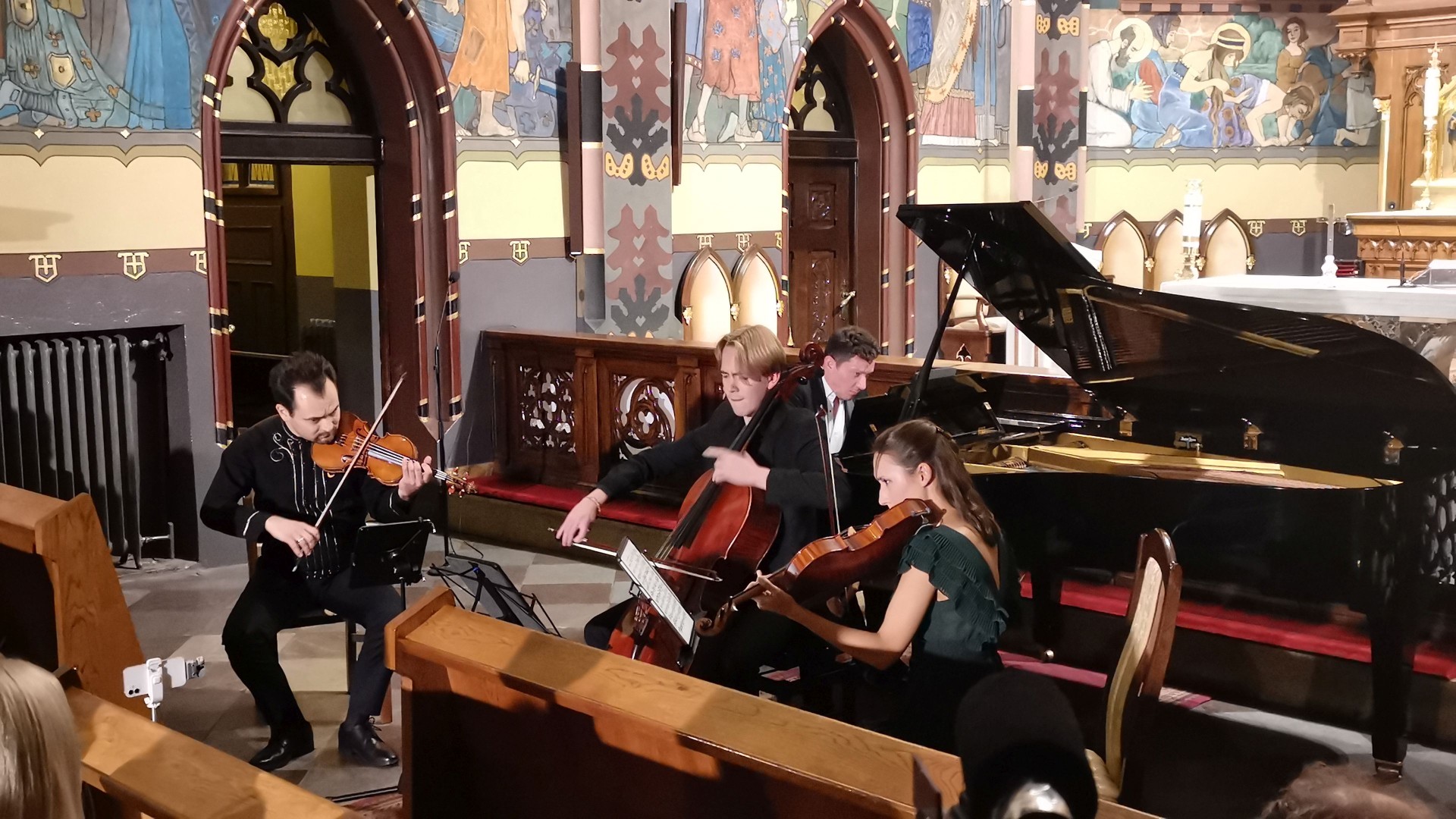 Wiceprezydent Witold Nowak podkreślił, że myśląc o muzycznych przestrzeniach powinniśmy też brać pod uwagę przestrzeń ducha i przeżywania. Tego też życzył zgromadzonym w konińskiej farze. Publiczność gromkimi brawami przywitała niezwykłego muzyka, rodem z Konina. Janusz Wawrowski wystąpił najpierw z grającym na fortepianie Mischą Kozłowskim. Później do muzyków dołączyła córka wybitnego skrzypka – Julia Wawrowska (altówka) i wiolonczelista – Michał Balas. Dzisiejszego wieczoru usłyszeć można było usłyszeć muzykę A. Dvoraka, Z. Noskowskiego i C. Schumanna.