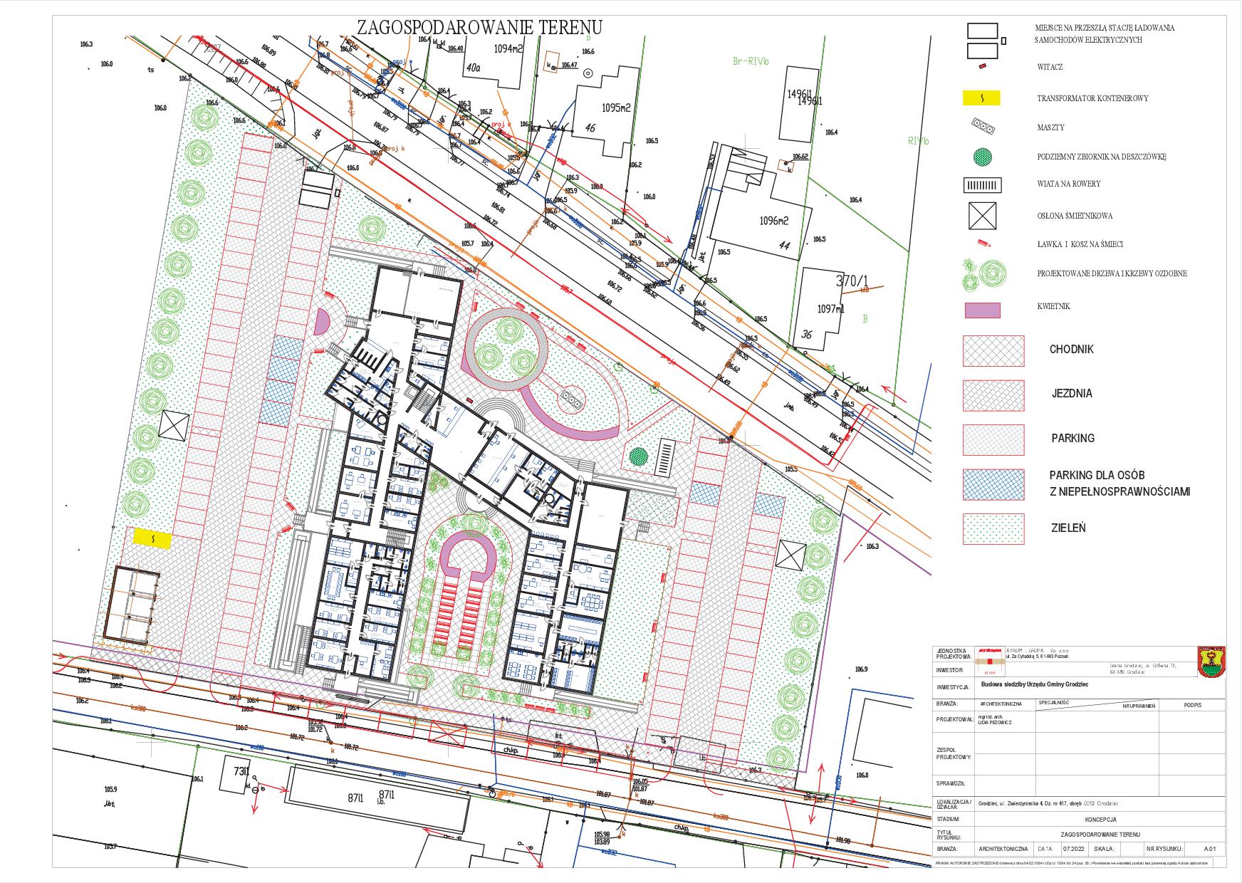 - To w wielkim skrócie: 1900 metrów kwadratowych zabudowy biurowej i technicznej, oraz 1200 metrów kwadratowych zagospodarowanego terenu (w tym blisko 100 miejsc parkingowych), co daje ogółem ponad 3000 metrów kwadratowych powierzchni użytkowej – informuje Mariusz Woźniak. – W budynku w kształcie litery "H" przewidziano salę główną (sesyjną/ślubów) na 150 osób, biura i archiwa. Dodatkowo na poziomie piwnicy przewidziano jadłodajnię i/lub restaurację oraz zaplecze techniczne (magazyny, pomieszczenia socjalne). Z kolei dziedziniec będzie miejscem odpoczynku oraz organizacji różnego rodzaju wydarzeń, w tym ślubów w plenerze – dodaje.