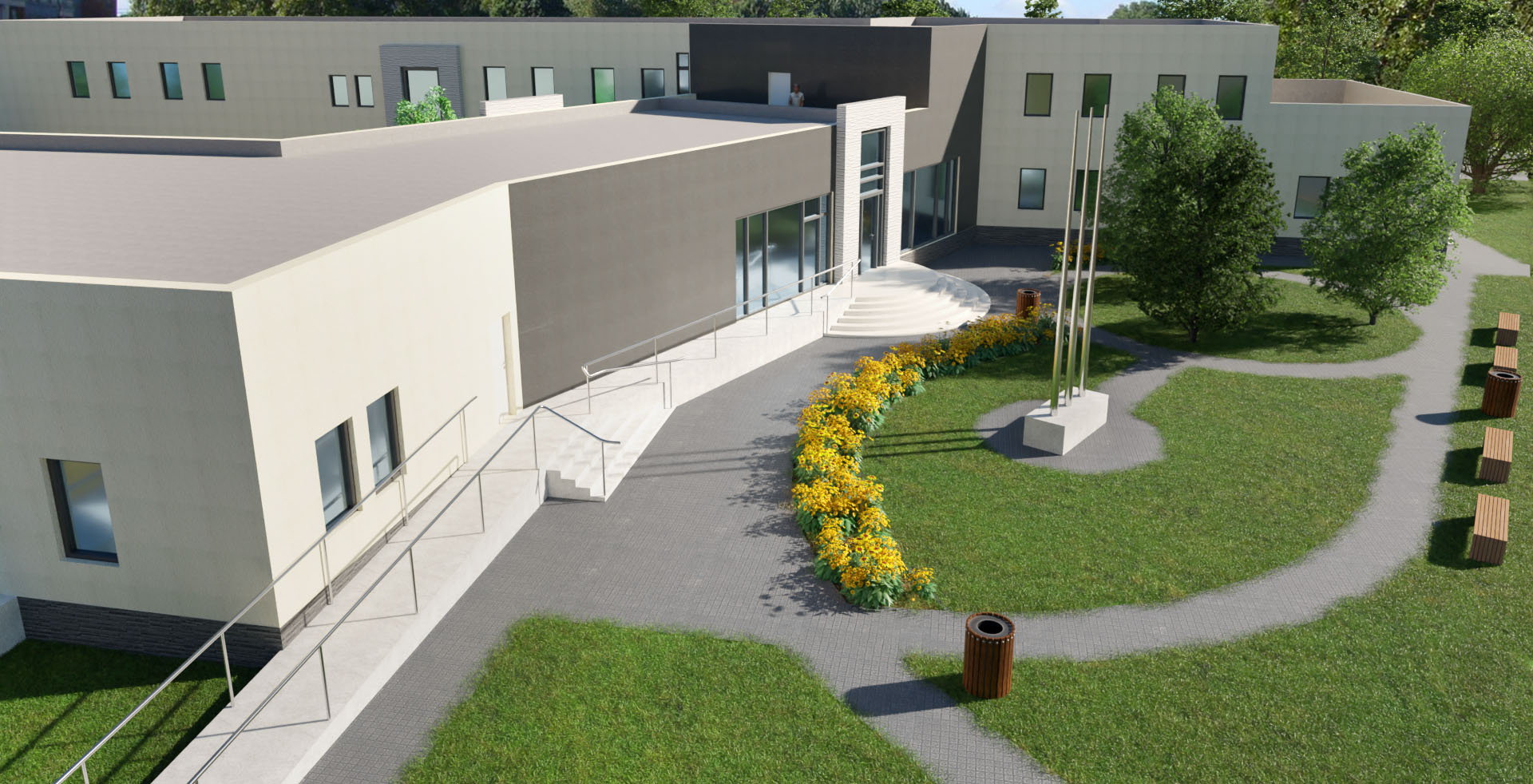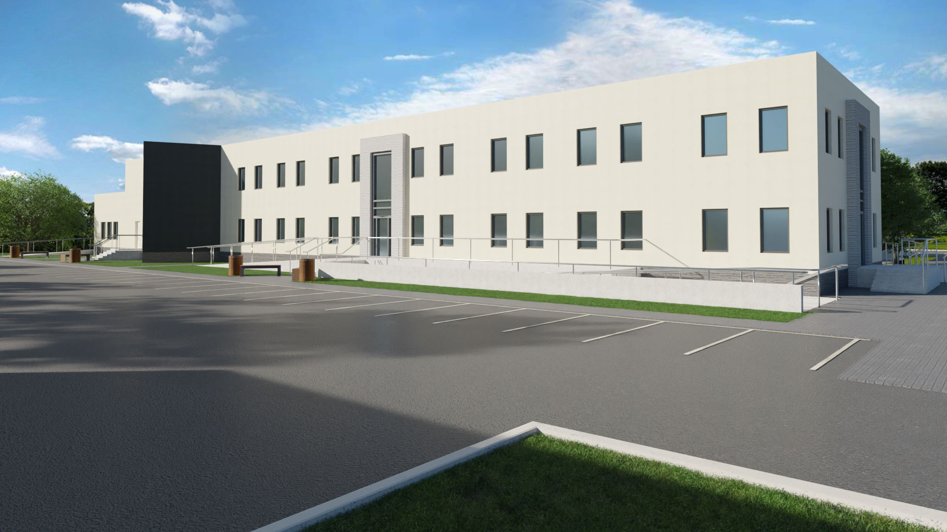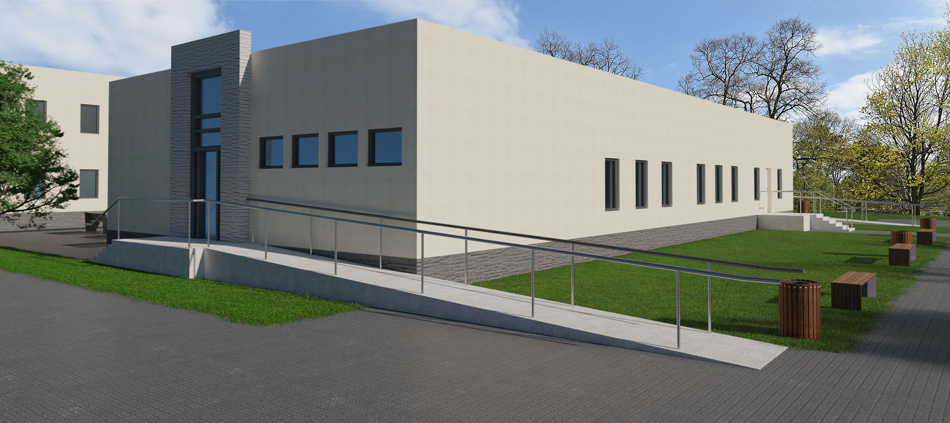Zespół trzech nowoczesnych budynków, dostosowanych do potrzeb osób z niepełnosprawnościami, z biurami, salą ślubów, pocztą i zapleczem technicznym. Tak ma wyglądać kompleks administracyjno-biurowy, w skład którego wchodzić będzie nowy Urząd Gminy w Grodźcu. Jest pierwsza wizualizacja obiektu.