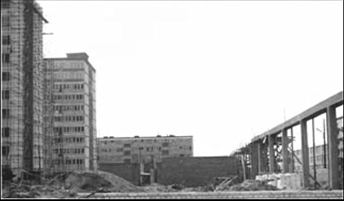 Ale prawdziwy „sam” był dopiero budowany - na moich oczach rósł długi pawilon (fot. 3), który przez następnych kilka lat był największą placówką handlową w mieście. Zanim jednak opowiem o słynnym Supersamie, jak wtedy go nazwano, nie mogę pominąć opisu jego otoczenia, które w niczym nie przypominało dzisiejszego centrum nowego Konina. Wtedy bowiem nikt nie miał wątpliwości, że centrum miasta znajduje się w jego starej części.