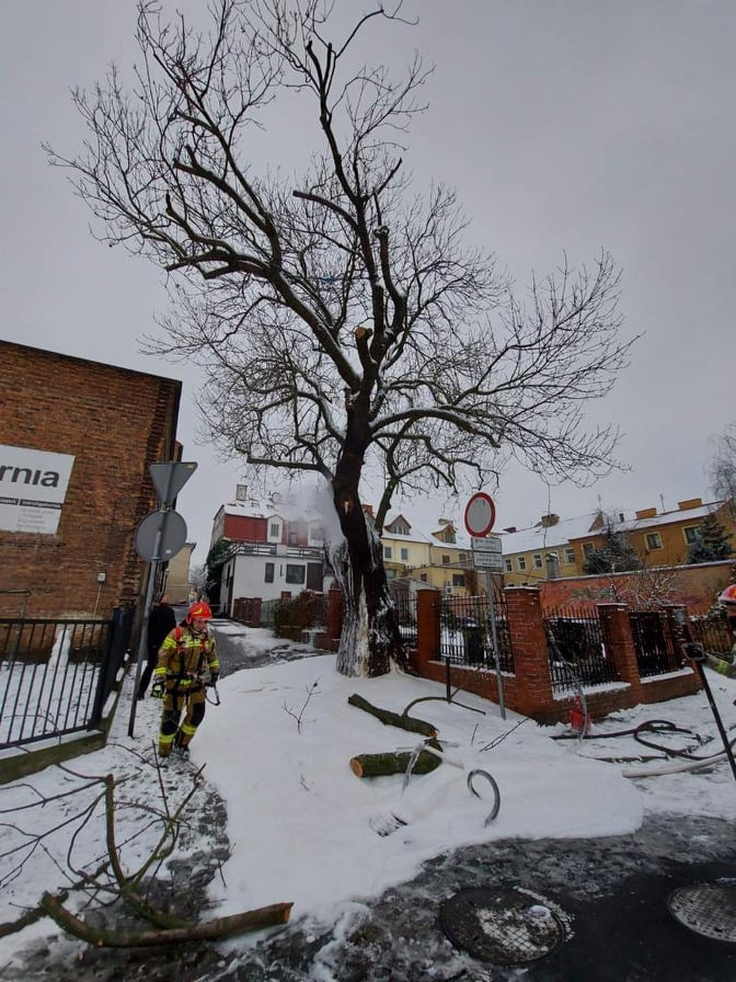 Przez pożar starego jesiona ul. Śliska jest nieprzejezdna