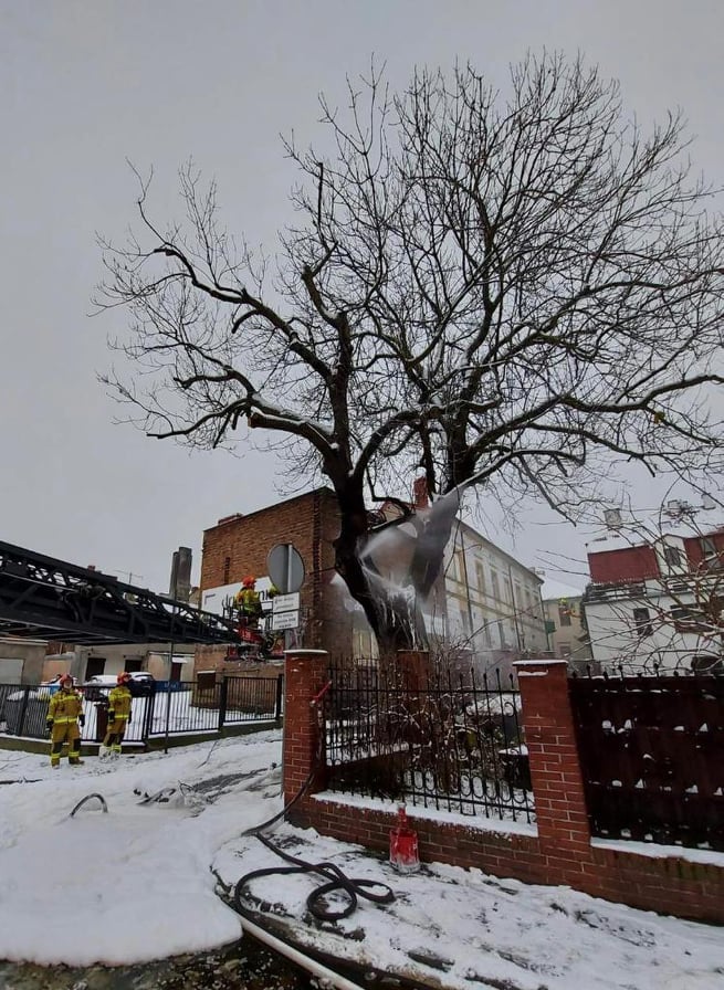 Jesion przy ul. Śliskiej od dawna tworzył klimat konińskiej starówki. Wczoraj z niewyjaśnionych dotąd przyczyn drzewo zaczęło się palić. Na miejscu pojawili się strażacy, którym szybko udało się opanować pożar.