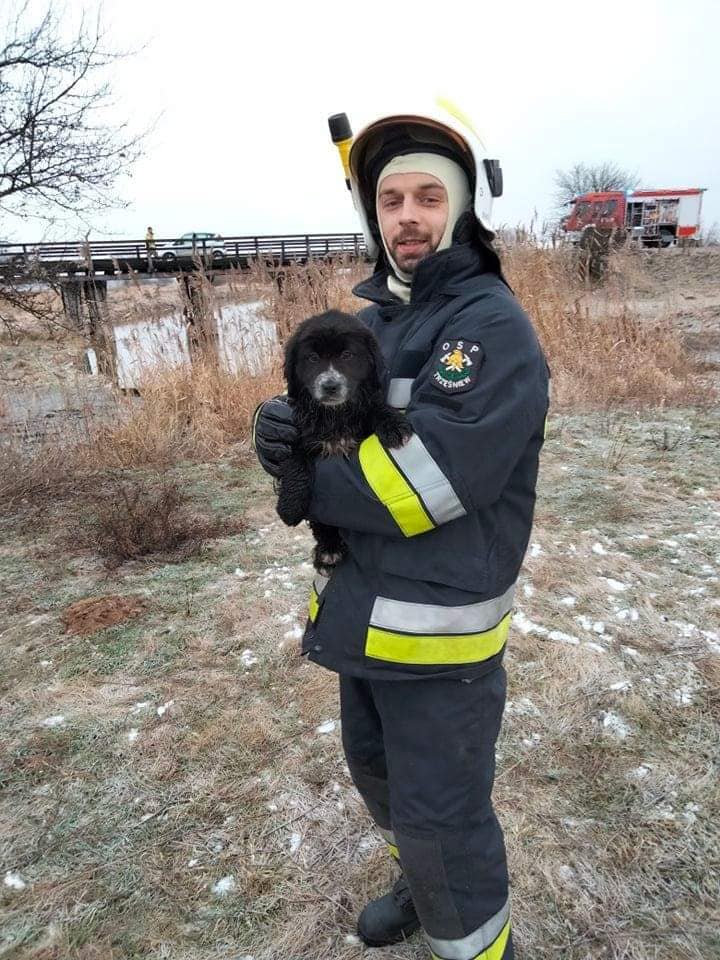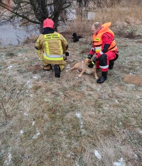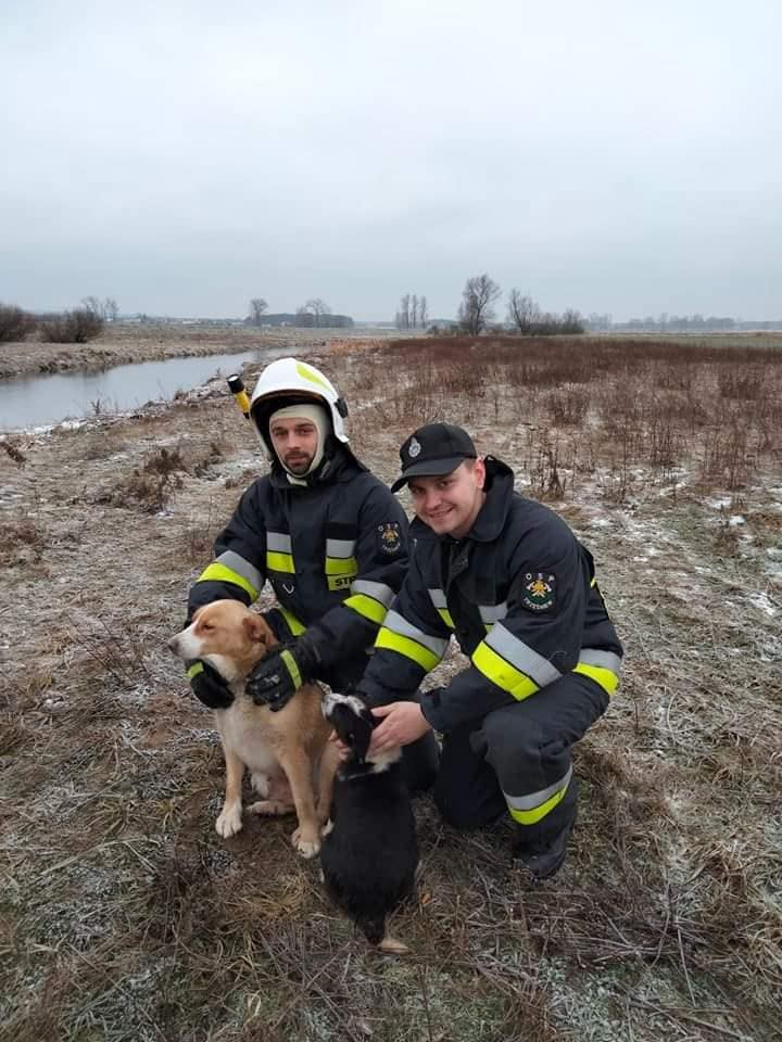 Na strażaków OSP i PSP zawsze można liczyć, zwłaszcza kiedy trzeba ratować zwierzęta. Tym razem ruszyli z pomocą, gdy otrzymali zgłoszenie, że w Trzęśniewie (gmina Kościelec), na rzece Kiełbasce załamał się lód i do wody wpadły dwa nieduże psy.