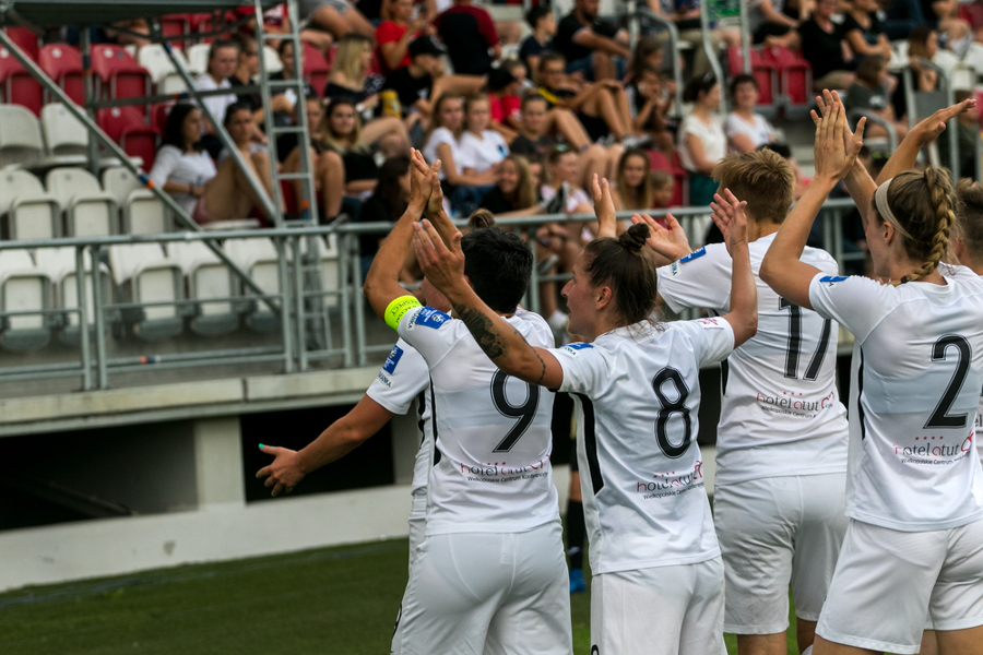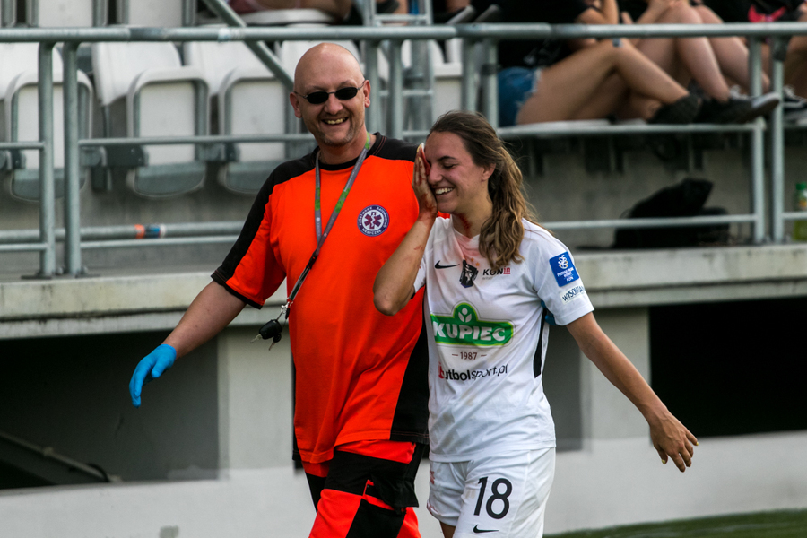 Osłabienia na prawej stronie koninianek dały jednak o sobie znać po przerwie. W 51. minucie właśnie z tego skrzydła poszło dośrodkowanie. Piłkę trąciła jeszcze Stephanie Busch, a do siatki dobiła ją Dżesika Jaszek. I choć Czarni w drugiej połowie przeważali, to Medyk i tak zdołał zadać jeszcze jeden cios. Kontratak lewą stroną przeprowadziła Natalia Chudzik, wyłożyła piłkę Dominice Kopińskiej, a tej pozostało tylko dobić piłkę do siatki.