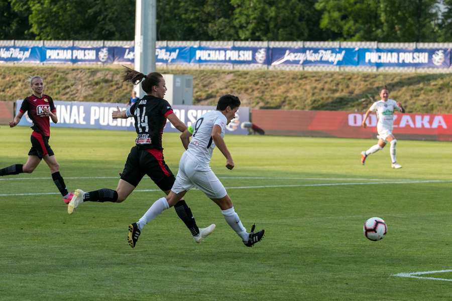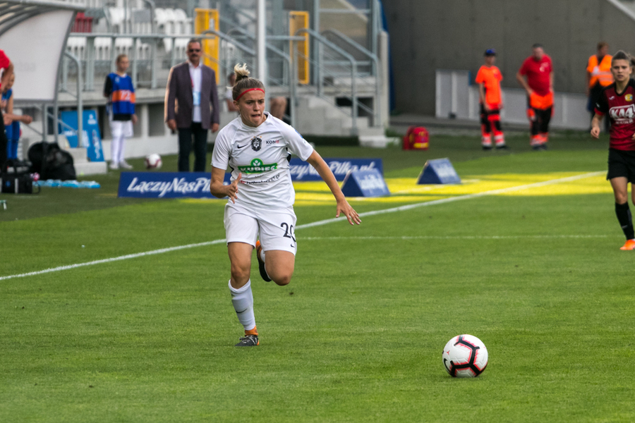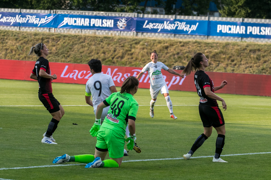 Medyk w rozgrywanym w Łodzi finale Pucharu Polski zrobił to, czego nie był w stanie zrobić podczas ostatniej ligowej kolejki w Łęcznej - szybko wykorzystał swoje szanse i wyszedł na prowadzenie. Już w ósmej minucie Nicole Zając przeprowadziła świetną akcję prawą stroną, dograła w pole karne, tam w akcję wmieszała się Anna Gawrońska, a zamieszanie wykorzystała Natalia Chudzik. Osiem minut później było już 0:2. Tym razem to Chudzik dograła do Kopińskiej, a ta podwyższyła prowadzenie koninianek.