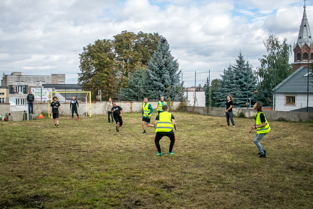 W niedzielę społeczność skupiona przy Restart Labie zaprosiła do gry na spornym terenie konińskich dziennikarzy. Wcześniej, w zaledwie kilka dni, młodzież doprowadziła plac do wstępnej używalności. I choć murawa może nie była tak równa, jak na profesjonalnych obiektach, to jednak dwie drużyny stanęły naprzeciw siebie i mecz rozegrały. Była muzyka, byli kibice, ale też sporo sportowej rywalizacji. Ostatecznie górą po godzinie gry był Restart Lab, który pokonał dziennikarzy 2:1.