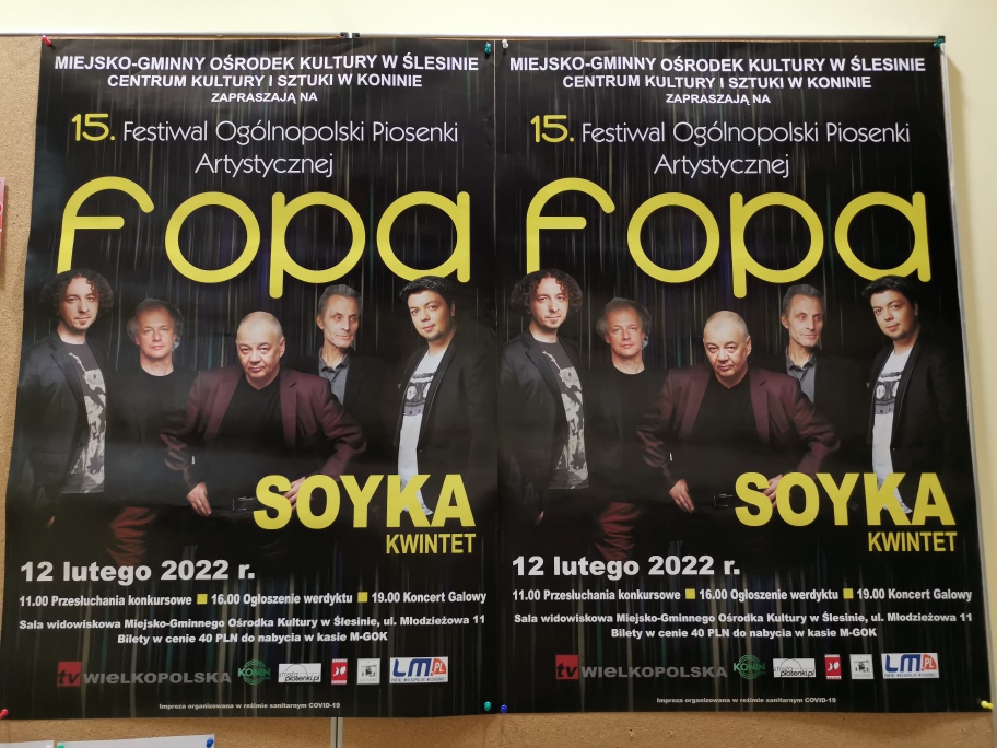 W ślesińskim domu kultury odbyła się piętnasta edycja Festiwalu Ogólnopolskiego Piosenki Artystycznej, w skrócie FOPA. - To szmat czasu, a my tworzymy historię. Mimo różnych przeciwności nie poddaliśmy się i wszystkie edycje się odbyły. Aż do jubileuszu. Organizujemy ten festiwal z myślą o ludziach, którzy tworzą mądre piosenki, co nie łatwe w dzisiejszym świecie. Trwamy i to jest nasza duma w Ślesinie. Trzymajmy się więc dobrej piosenki!