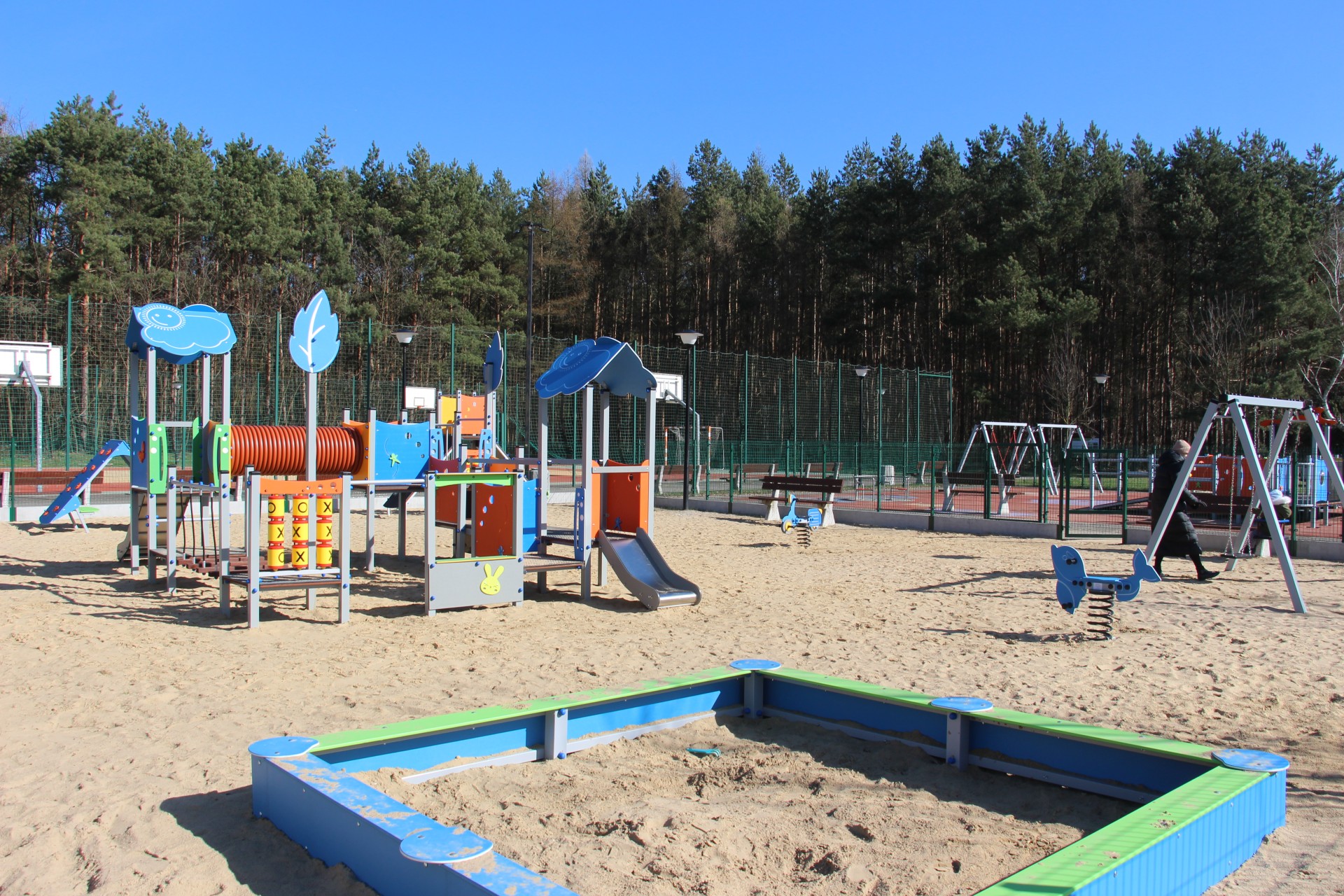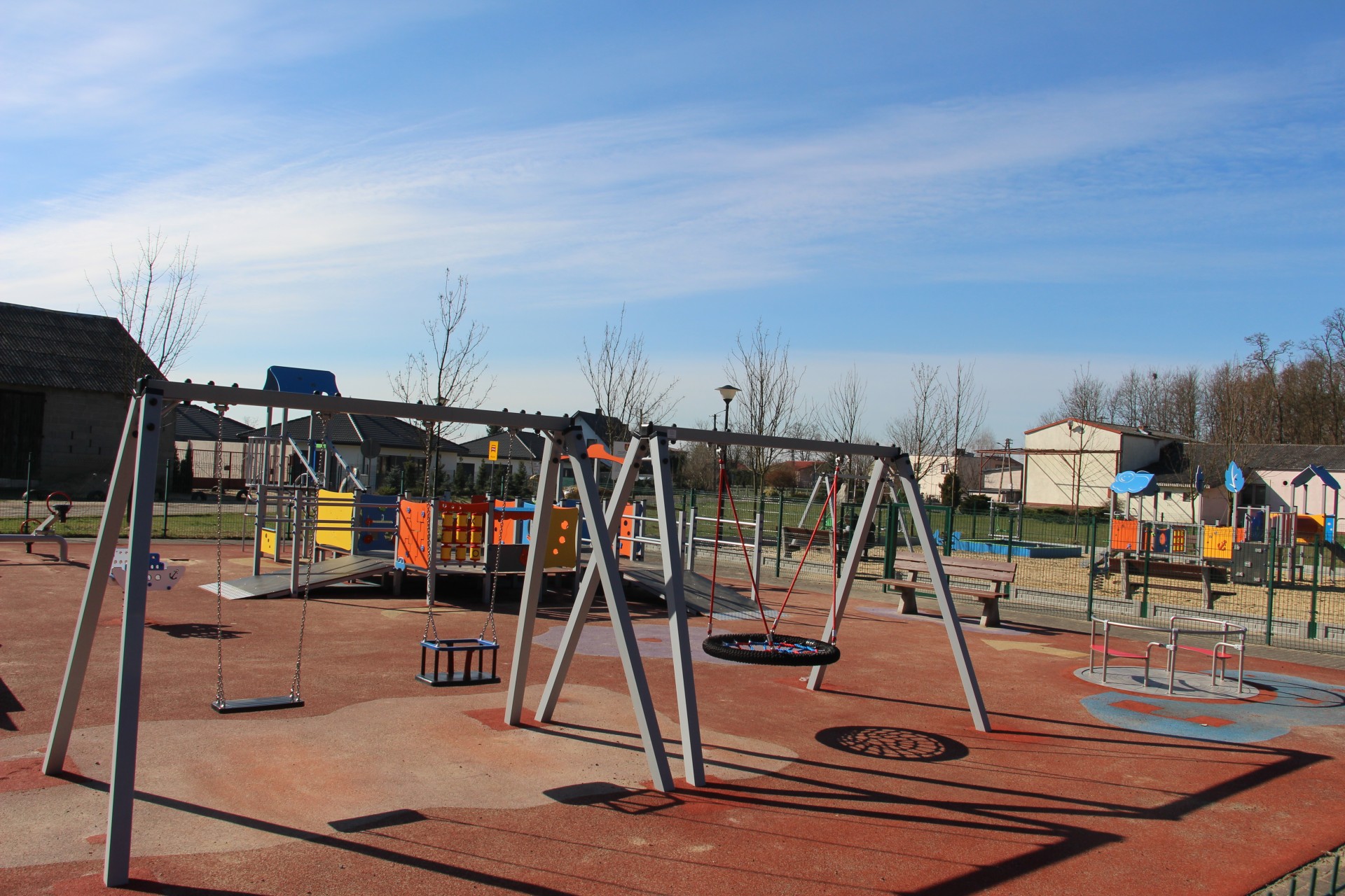 Wśród nowości pojawiły się: zestaw integracyjny, huśtawka „bocianie gniazdo” oraz karuzela integracyjna. Ponadto wymieniono ogrodzenie, nawierzchnie oraz oprawy lamp oświetleniowych. Zamontowano nowe urządzenia takie jak karuzela, piaskownica, huśtawki, domek ze wspinaczką oraz urządzenia sprężynowe. Wartość przebudowy wyniosła ponad 313 tys. zł. Urząd gminy pozyskał dofinansowanie na to zadanie w wysokości ponad 148 tys. zł w ramach Programu Rozwoju Obszarów Wiejskich.