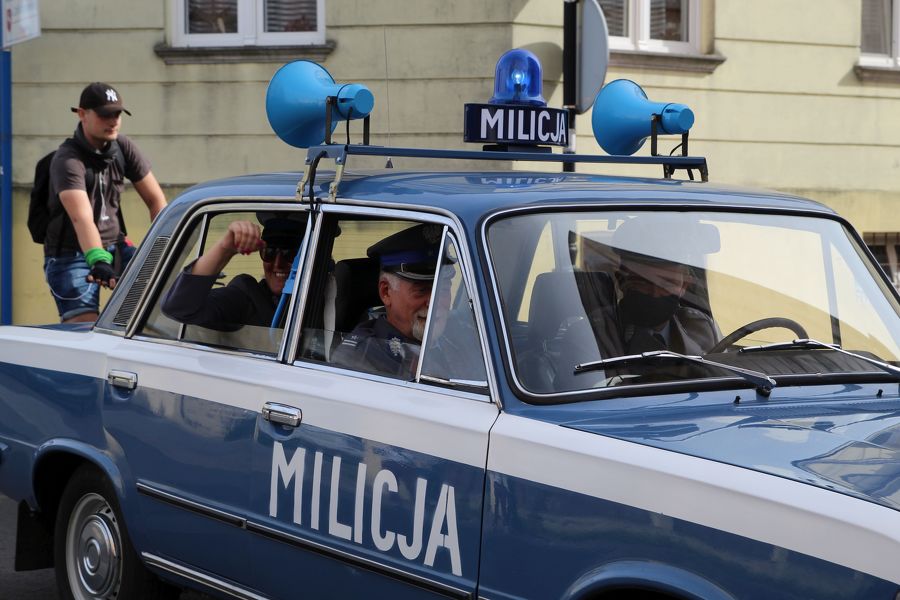 Milicyjny radiowóz i „maluch” poprowadziły 13. Konińską Masę Rowerzystów. Rajd w klimacie PRL przyciągnął około 300 miłośników jednośladów.