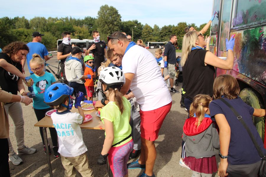 Cykliści podzieleni na dwie grupy przejechali z rynku do zajezdni MZK, gdzie mieli okazję pomalować autobusy. Stamtąd wyruszyli w dalszą drogę po starej części miasta. Po pokonaniu ponad 16 km dojechali do mety, która w tym roku była w parku im. F. Chopina.