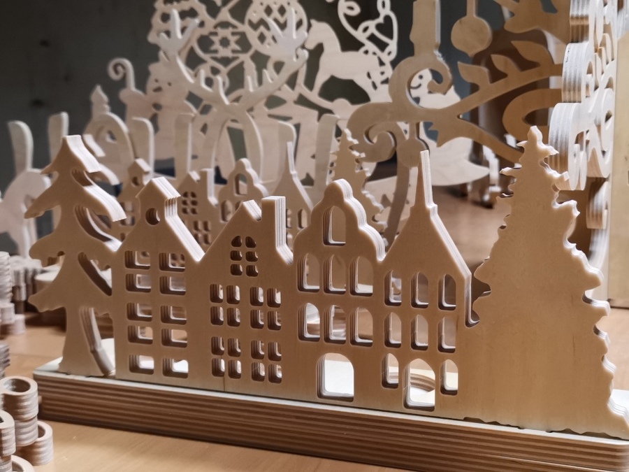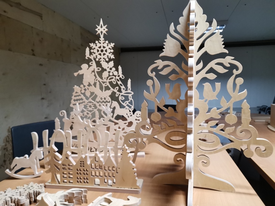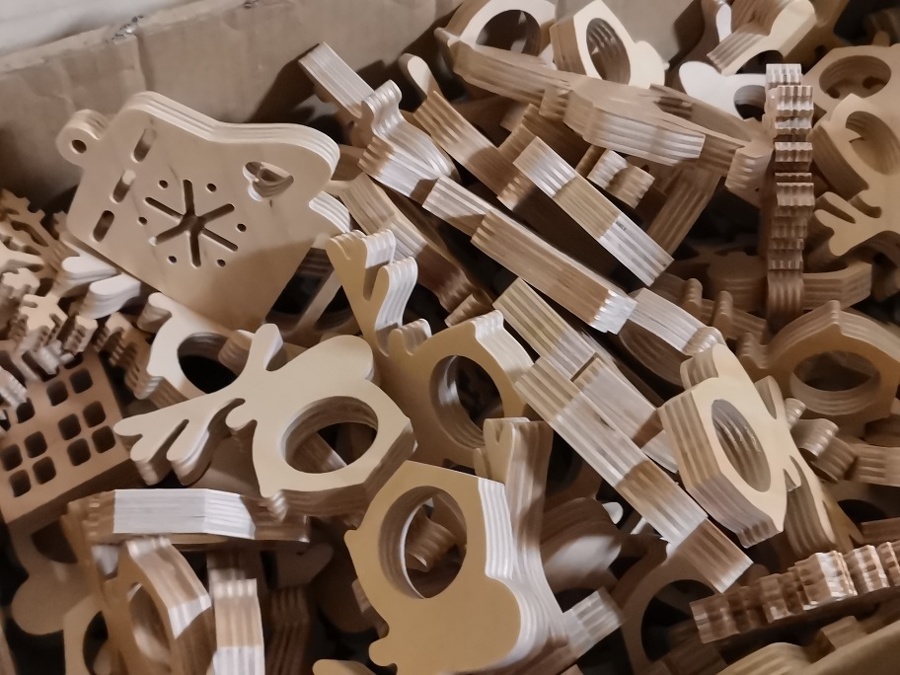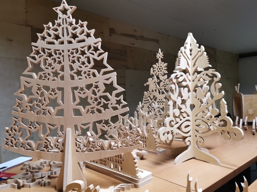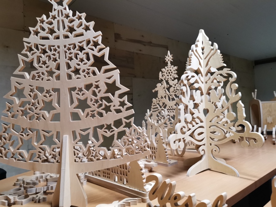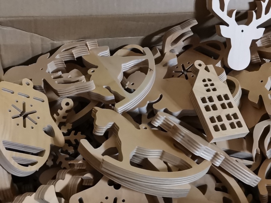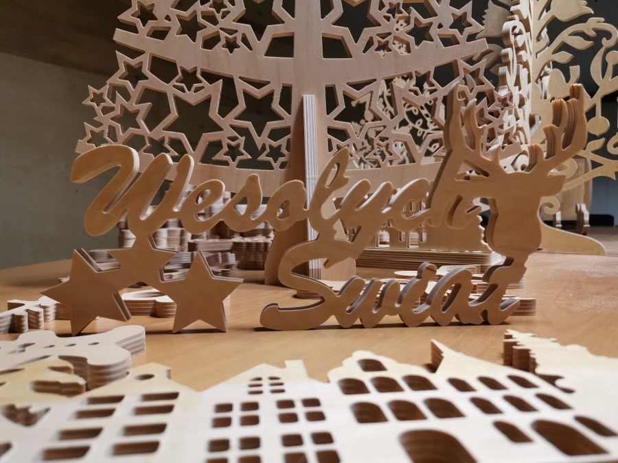 Sklejka jest wdzięcznym tworzywem i znakomicie sprawdziła się w ozdobach świątecznych. Jak to zwykle bywa, pomysł na tego typu produkcję zrodził się z potrzeby chwili i trudnej sytuacji gospodarczej spowodowanej epidemią. Kiedy to firmy musiały zapewnić sobie jakieś dodatkowe zajęcie, aby przetrwać. W przypadku Trele Morele udało się postawić jeszcze na działanie zero waste.