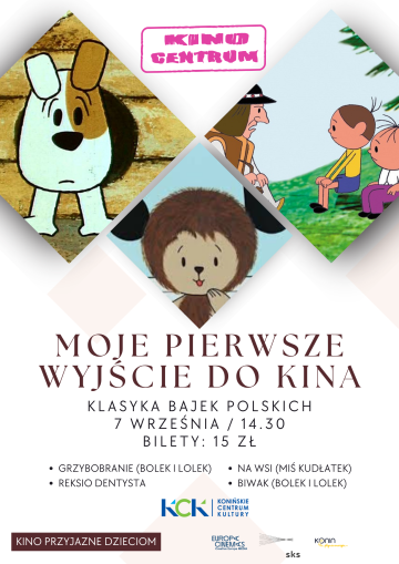 - Moje pierwsze wyjście do kina – o godz. 14:30 w Konińskim Centrum Kultury wyświetlone zostaną bajki: Reksio, Bolek i Lolek oraz Miś Kudłatek.