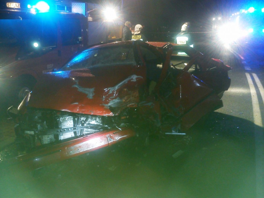 Jadący Seatem Toledo z niewyjaśnionych dotąd przyczyn zderzył się z Renault Clio. Siła uderzenia była tak duża, że Renault wypadł z drogi i wjechał do przydrożnego rowu.