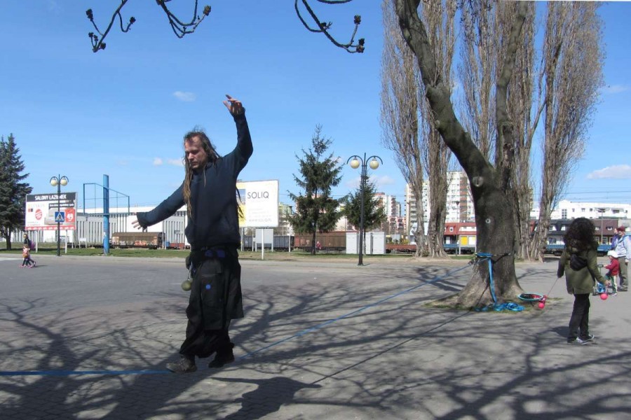 Podpisy zbierało przez dwie godziny kilkoro wolontariuszy, wspieranych przez happenerów, którzy przyciągali uwagę przechodniów. Na pewno udało się to Dawidowi Wieczorkowskiemu, który wędrował po taśmie, rozpiętej między drzewami. - Zebraliśmy dzisiaj około dwieście podpisów - podsumował na gorąco Damian Kruczkowski - ale w sumie mamy ich już dużo więcej.