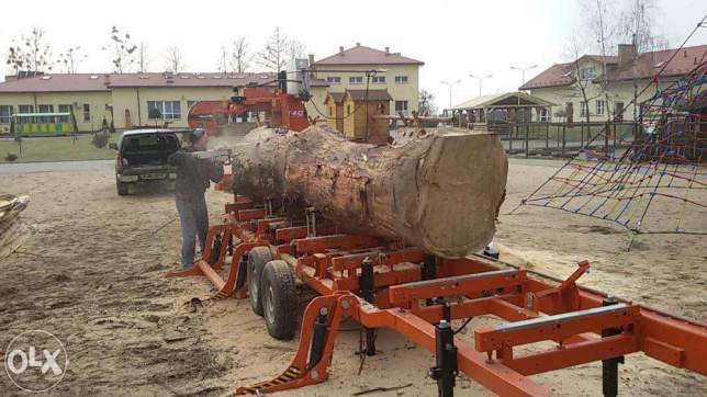 Posiadamy traki przejezdne (spalinowe i elektryczne) firmy Wood-Mizer - najlepsze na polskim rynku. Traki, na których pracujemy wyposażone są w wydajny system hydrauliczny umożliwiający szybki załadunek kłody i jej obracanie.