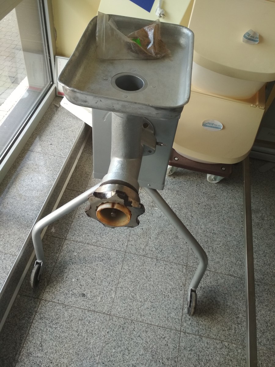 Polskie urządzenie „WILK”do mielenia maku, mięsa itp., wysokość 108 cm.Urządzenie używane ale jego stan określam jako bardzo dobry.Zapraszam do kontaktu! :)Podana cena jest ceną netto