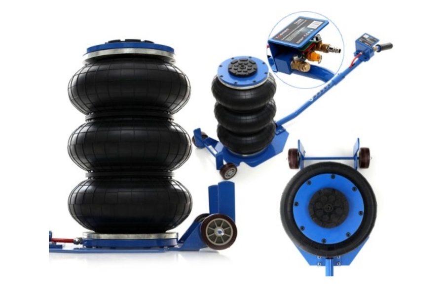 Podnośnik pneumatyczny poduszkowy To profesjonalny sprzęt, który z powodzeniem może być używany m .in. w zakładach wulkanizacyjnych oraz warsztatach samochodowych, czy w gospodarstwach rolnych. Ten bałwanek maksymalnie uniesie punktowo pojazdy o masie do 3,5 ton. Wewnątrz poduszki zastosowano wysokiej jakości teleskop wewnętrzny zapewniający stabilność konstrukcji nawet pod maksymalnym obciążeniem. Podnośnik zasilany jest sprężonym powietrzem o ciśnieniu roboczym od 5 do maks. 10 bar.