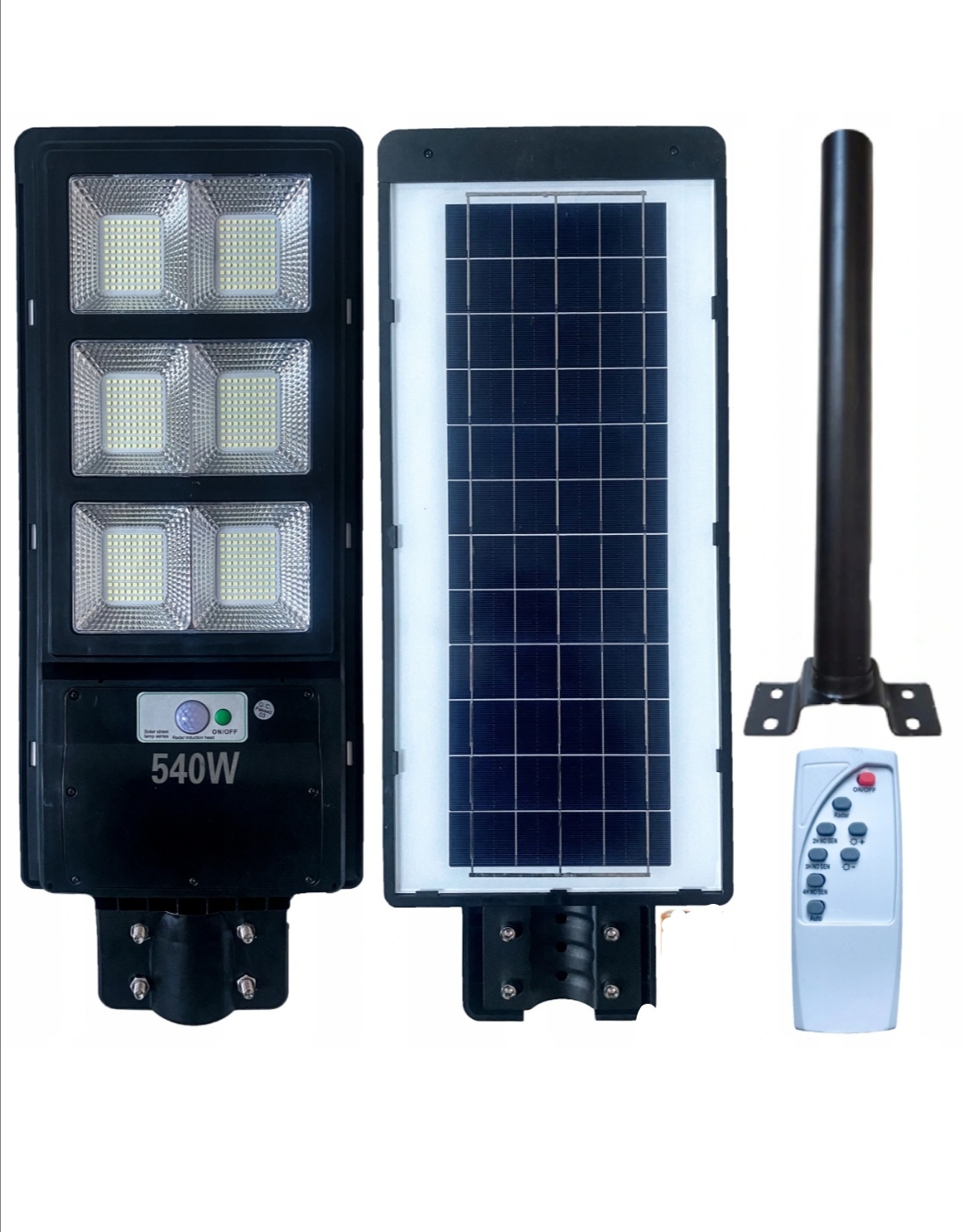 Moc: 600W 700w 800w 900w 1200w 540w 480w 108Wbudowane czujniki: ruchu i zmierzchuPilot sterujący lampą: TAKKlasa: IP68Czas ładowania: 7-8hŻywotność: 60000h ( Kolor światła: 6500k (biały zimny)Temperatura pracy: -30 ~ 60°C,Materiał wykonania: aluminium, PVCWymiary: 67,7 x 34,2 x 7 cmWysokość montażu: 3 - 8 mKolor: czarnyLampa posiada wbudowany wskaźnik naładowania baterii podświetlany na niebieskoZESTAW ZAWIERALampę solarną LED 600W z panelem słonecznymPilot do sterowaniaŚruby montażowe przy latarniUchwytWYGODNY MONTAŻCiesz się ekologiczną i całkowicie darmową energią słoneczną, dzięki której oświetlisz dowolnie wybrane miejsce w swoim ogrodzie, na działce, na ulicy czy nawet nad jeziorem! Ponieważ do latarni solarnych nie trzeba doprowadzać żadnych przewodów, możliwe jest zamontowanie jej nawet w kłopotliwych miejscach takich jak pomosty, mariny i nabrzeża!ENERGIA DOSTOSOWANA DO WSZYSTKICH TWOICH POTRZEB. Lampa posiada programator, dzięki któremu możliwe jest dopasowanie mocy oraz czasu świecenia.Tryb I - po zmierzchu lampa świeci z niewielką mocą (20%) i uaktywnia się do pełnej mocy tylko po wykryciu ruchu.Tryb II - lampa zapala się na 100% swojej mocy wybraną ilość godzinTryb III - lampa świeci z pełną mocą wybraną ilość godzin po czym wraca do trybu 1PROSTA OBSŁUGA PRZY POMOCY PILOTAWłączanie/wyłączanie