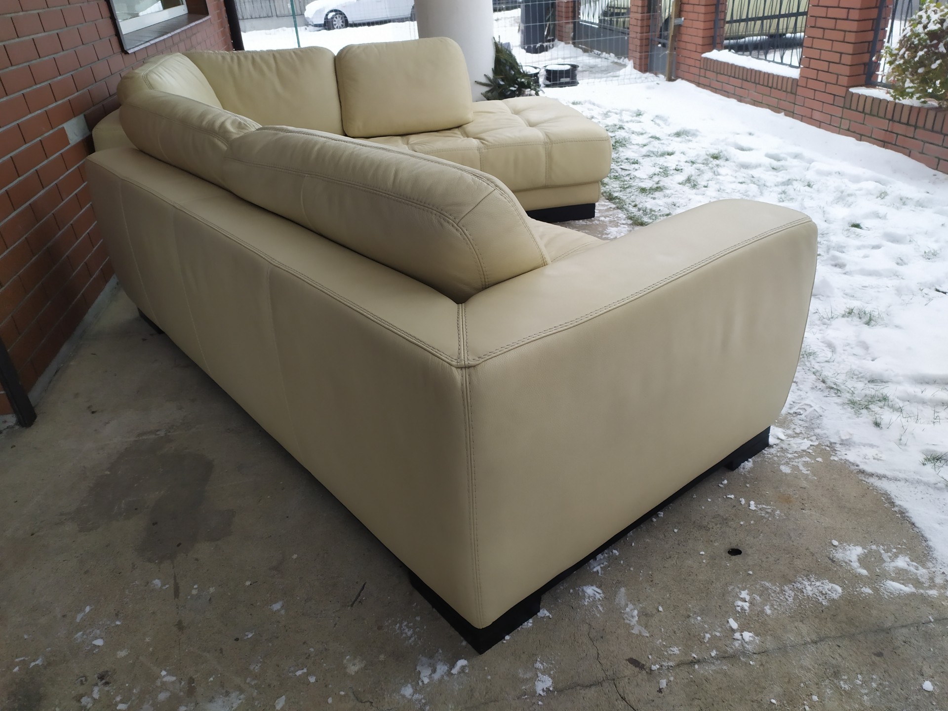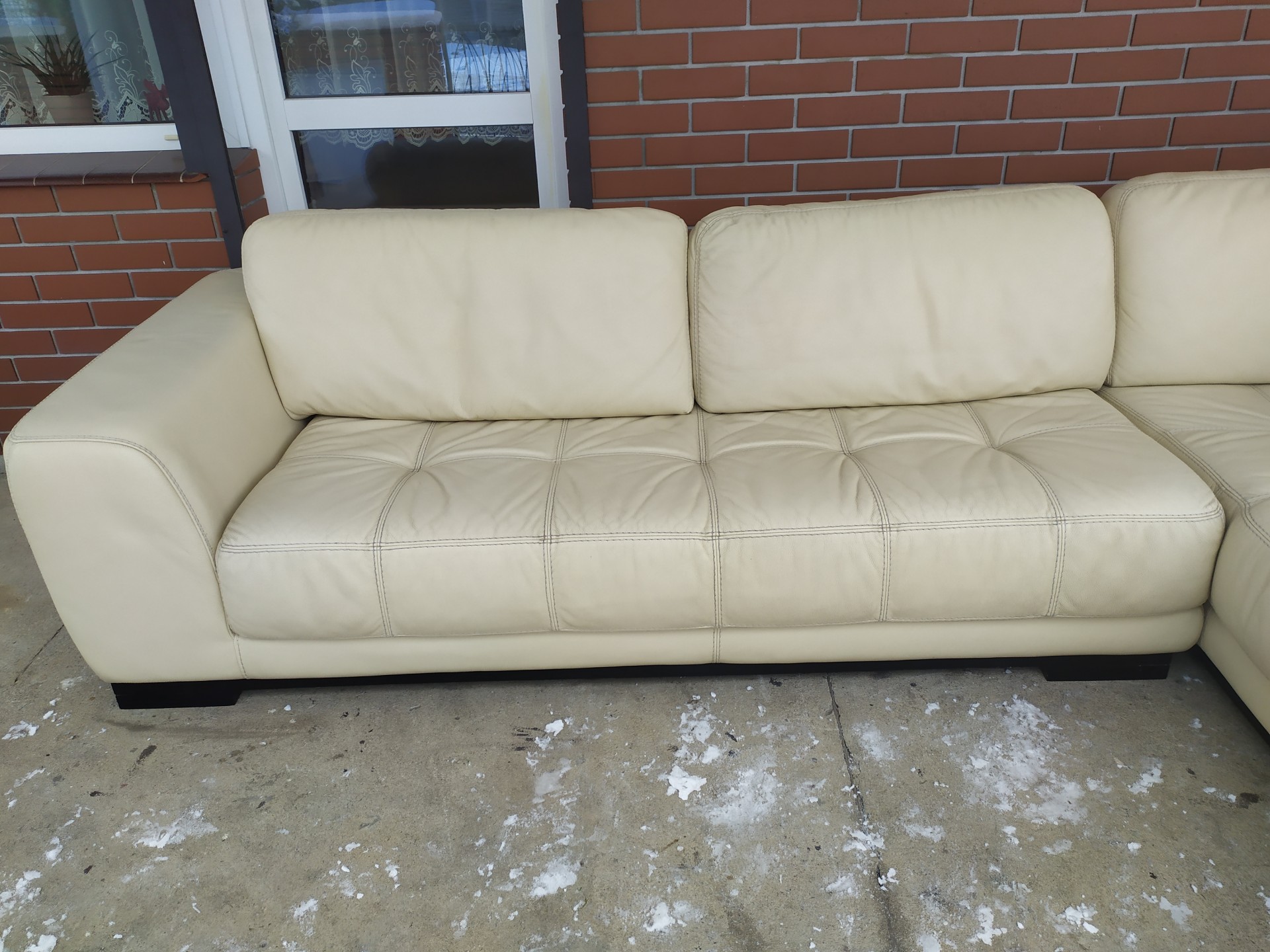 Sprzedam narożnik ze skory kolor ecru wymiary 310 na 210 nie posiada funkcji spania