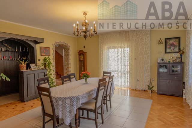 Oferujemy Państwu dom z potencjałem w Sompolnie. Dom o pow. 375m2 idealnie nadaje się dla dwóch rodzin oraz prowadzenie działalności gospodarczej. Posiada 2 niezależne wejścia. Dom posadowiony na zagospodarowanej działce o pow. 1788m2 składa się z 6 pokoi, 3 łazienek, 3 WC. Okna PCV, na podłodze panele, parkiet, terakota.Wyszczególnienie pomieszczeń:Piwnica: pralnia, spiżarnia, pomieszczenia gospodarcze-zagospodarowane, garaż o pow. ok. 28m2.Na parterze znajdują się 2 pokoje, łazienka, WC, korytarz. Dodatkowo pomieszczenie z osobnym wejściem wcześniej adoptowane na biuro. Na półpiętrze znajduje się duża, przestronna, zabudowana kuchnia oraz duży salon o pow. ok. 60m2 z wyjściem na taras. Na piętrze znajdują się 3 pokoje, łazienka, WC oraz biblioteczka. Na półpiętrze znajduje się pomieszczenie o pow. ok. 33m2, podzielone na 3 części: część dzienna, sypialnia, łazienka z WC. Z pomieszczenia wyjście na taras.Ogrzewanie ekogroszek. Na działce znajdują się 4 murowane garaże o pow. 160m2. Działka zagospodarowana z dużą altaną ogrodową. Serdecznie polecamy!