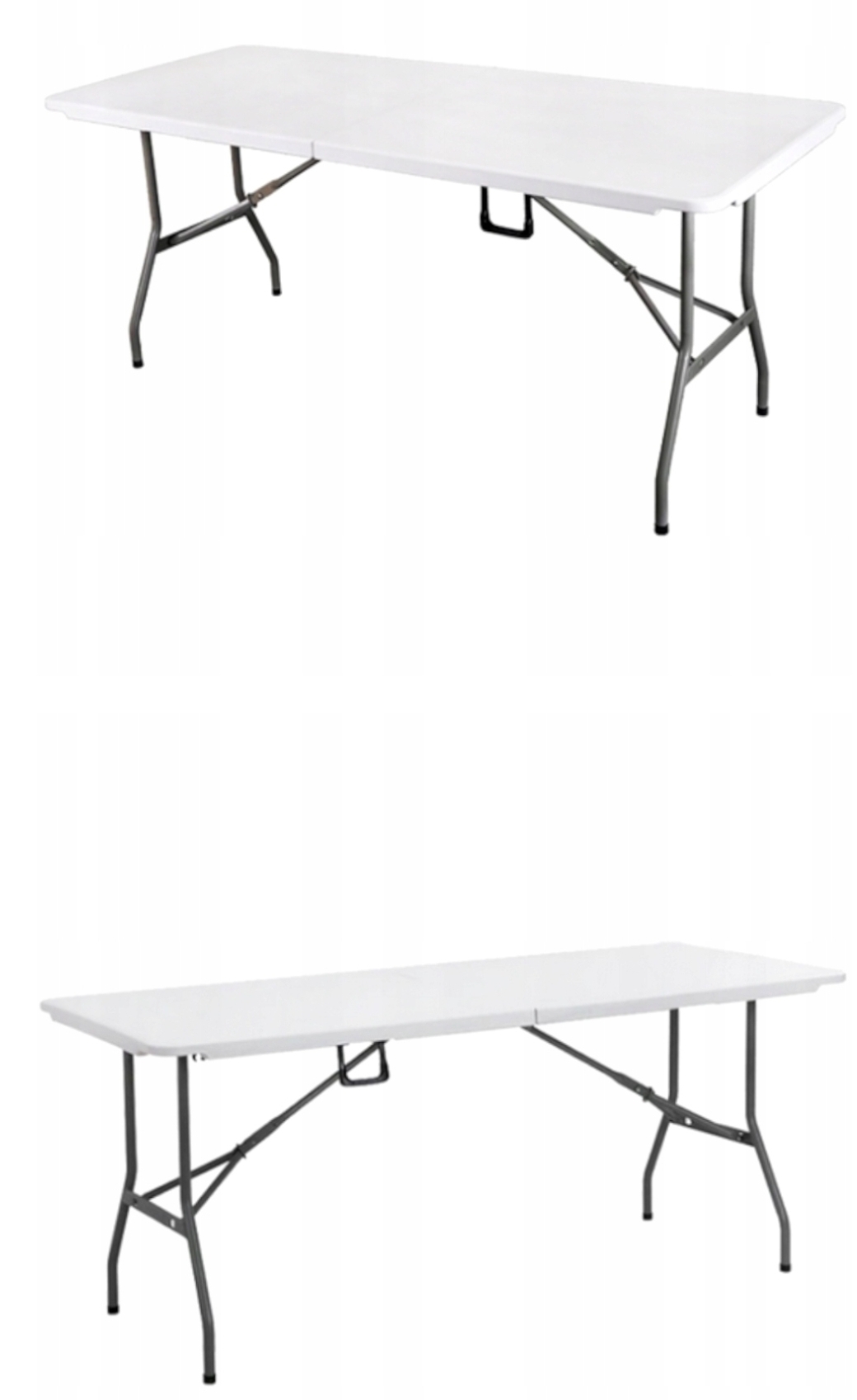 SPECYFIKACJA:Szerokość: 74 cmWysokość: 74 cmDługość: 180 cmGrubość blatu: 4 cmGrubość ramy: 2,5 cmMateriał blatu: Bardzo wysokiej jakości tworzywo sztuczne HDPEMateriał ramy: Stal malowana proszkowoKolor: białyStół jest bardzo praktyczny, wystarczy rozłożyć i gotowe! BEZ SKRĘCANIA!Składany stół cateringowy o wymiarach 180 cm x 74 cm. Idealny na imprezy firmowe i rodzinne spotkania w ogrodzie.Wykonany został z wysokiej jakości tworzywa sztucznego. Dzięki połączeniu białego blatu i czarnych nóg, idealnie wkomponuje się w każde otoczenie i dekorację.Przy stole można pomieścić do 8 krzeseł.Górna część wykonana jest z solidnego tworzywa sztucznego, natomiast stelaż ze stali malowanej proszkowo.Specjalne zatrzaski (zamki) zapobiegają automatycznemu opuszczaniu stołu podczas przesuwania.Antypoślizgowe gumowe nóżki chronią stół przed zarysowaniem powierzchni i przesuwaniem stołu podczas imprezy.Do blatu na stałe przymocowany jest uchwyt, dzięki czemu po przyjęciu szybko i wygodnie przeniesiesz stolik do swojego samochodu lub do piwnicy.Stół cateringowy to doskonały produkt do zastosowań podczas impres rodzinnych i firmowych.Cec**je się solidną konstrukcją, wygodą oraz jakością wykonania. Dodatkowo stół posiada możliwość złożenia co czyni go łatwym w transporcie i przechowywaniu.Posiada blokadę przed złożeniem, pomocną przy przenoszeniu, oraz uchwyt dla łatwiejszego przenoszenia już złożonego stołu.