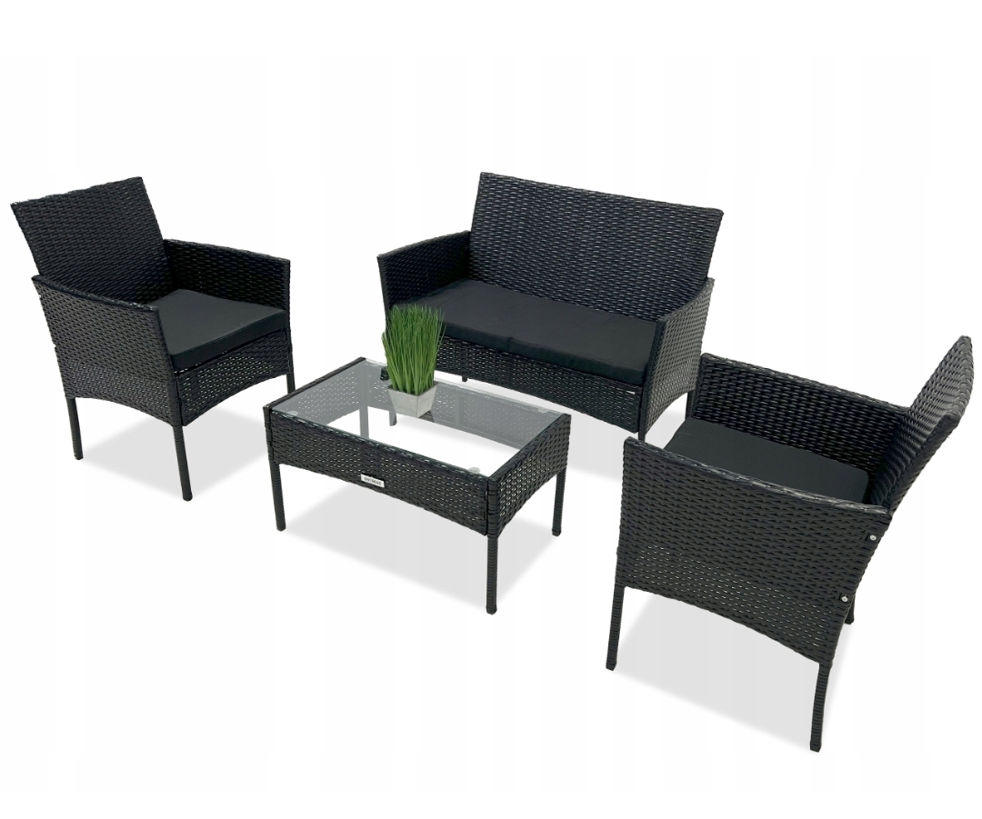zestawy mebli ogrodowych są trwałe. Malowana proszkowo stal i odporna na blaknięcie wiklina PE zapewniają solidność i trwałość temu zestawowi mebli ogrodowych.Miękko wyściełane fotele oraz sofa zapewniają maksymalny komfort i doskonałe wrażenia podczas siedzenia. Jeśli poduszki przypadkowo się zabrudzą, możesz po prostu odpiąć poszewkę i wyprać poszewki.Ten zestaw rattanowych mebli można ustawić na tarasie, ogrodzie, balkonie lub przy basenie.Meble są lekkie, dzięki temu można je z łatwością przenosić z miejsca na miejsce. Krzesła oraz sofa są stabilne poprzez odpowiednio dopracowaną konstrukcję.Fotele i sofaWygodne, wykonane z technorattanu z miękkimi poduszkami - lekkie, stabilne i bardzo komfortowe :)zestawie:3 poduszki w kolorze ecru, grubość 5 cm (wszystkie posiadają zdejmowane pokrowce, wykonane są z wodoodpornego materiału)2 foteleSofaStółNiezbędne elementy do montażuSpecyfikacja stołu:długość: 71 cmszerokość: 41 cmwysokość: 39 cmPraktyczny 4-osobowy stół do ogrodu lub tarasBlat wykonany ze szkła hartowanegoMetalowe profileDane techniczne:szerokość fotela: 56 cmgłębokość fotela : 50cmwysokość fotela: 81 cmWymiary siedziska fotela: 46 cm x 43 cmMaksymalna wytrzymałość: 120 kgŁatwo zmywalny i przewiewny materiał siedziska i oparcia krzesłaWymiary siedziska sofy: 93 cm x 43 cmszerokość sofy: 99 cmgłębokość sofy: 50 cmwysokość sofy: 81 cm