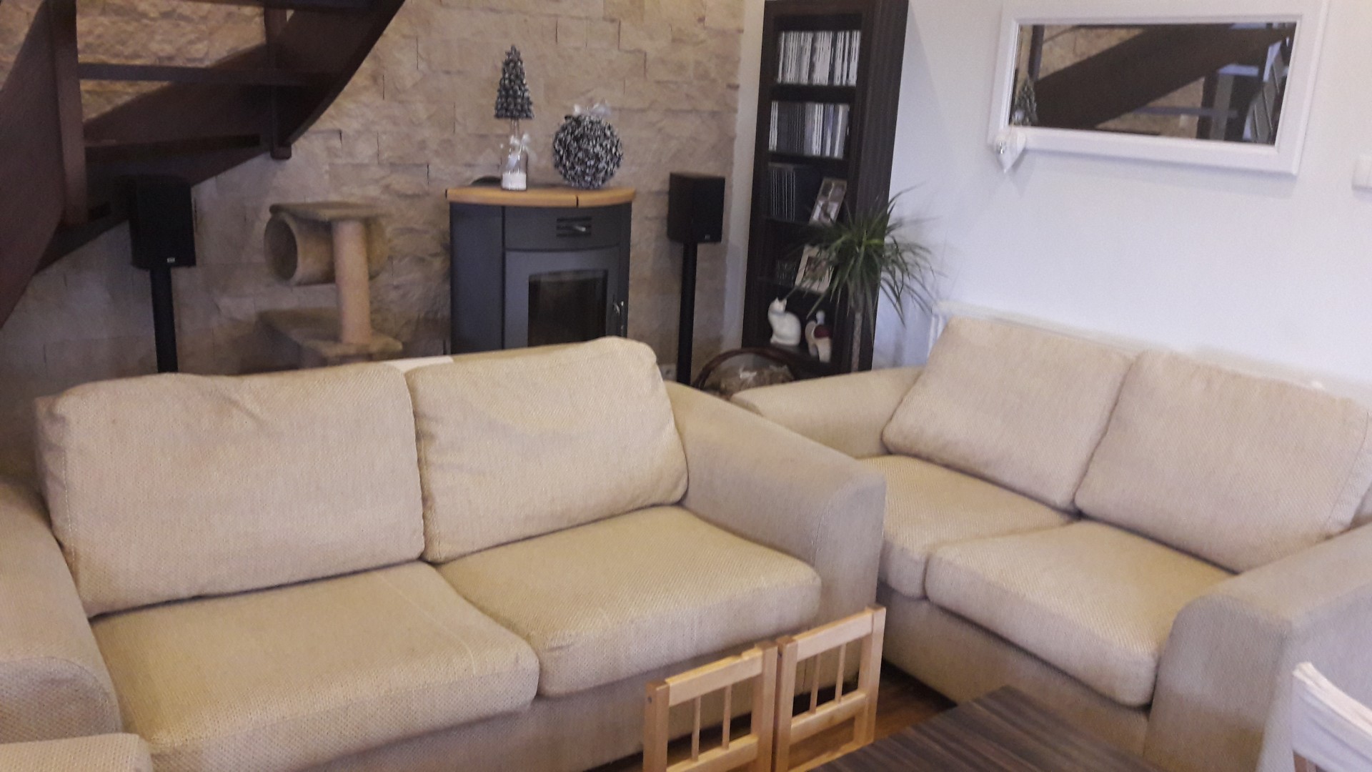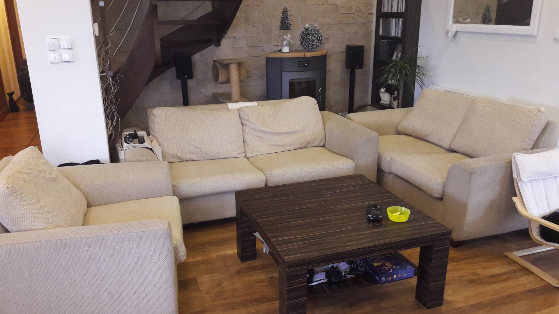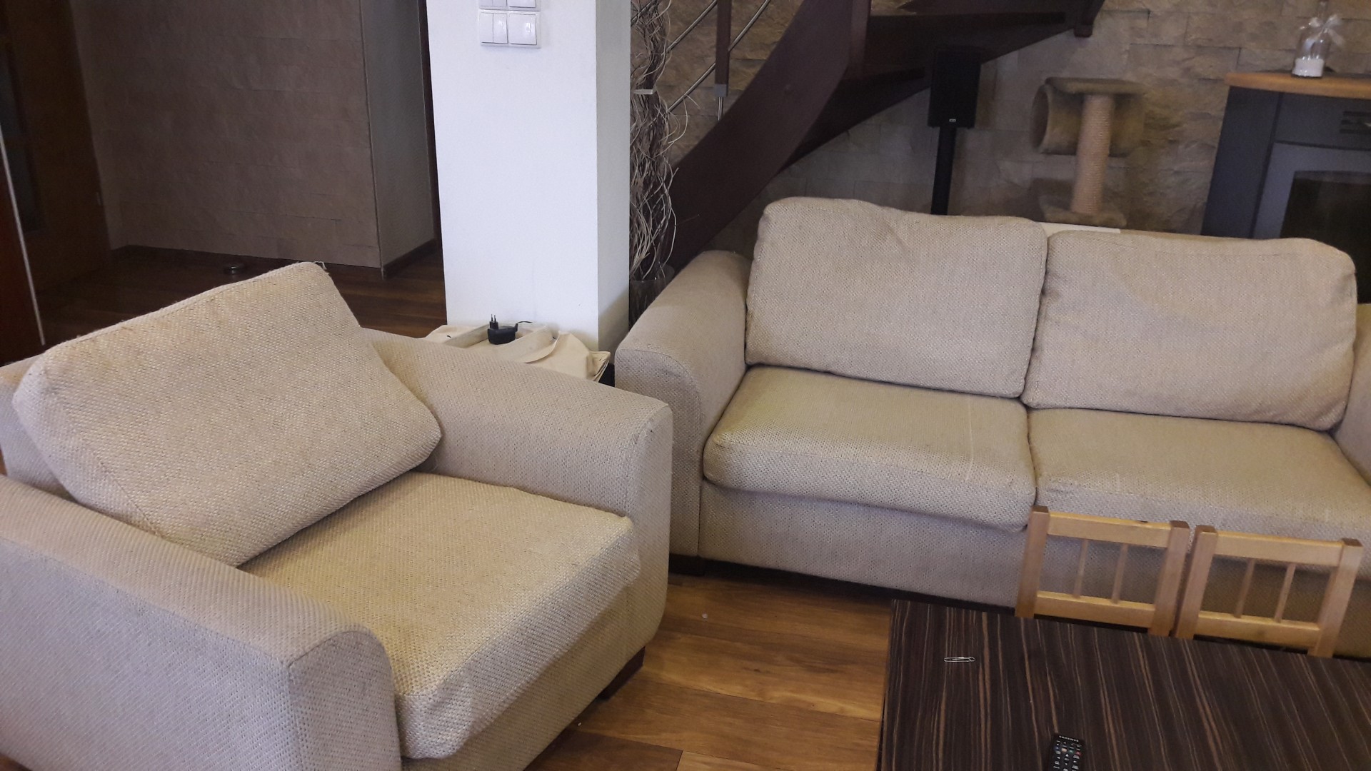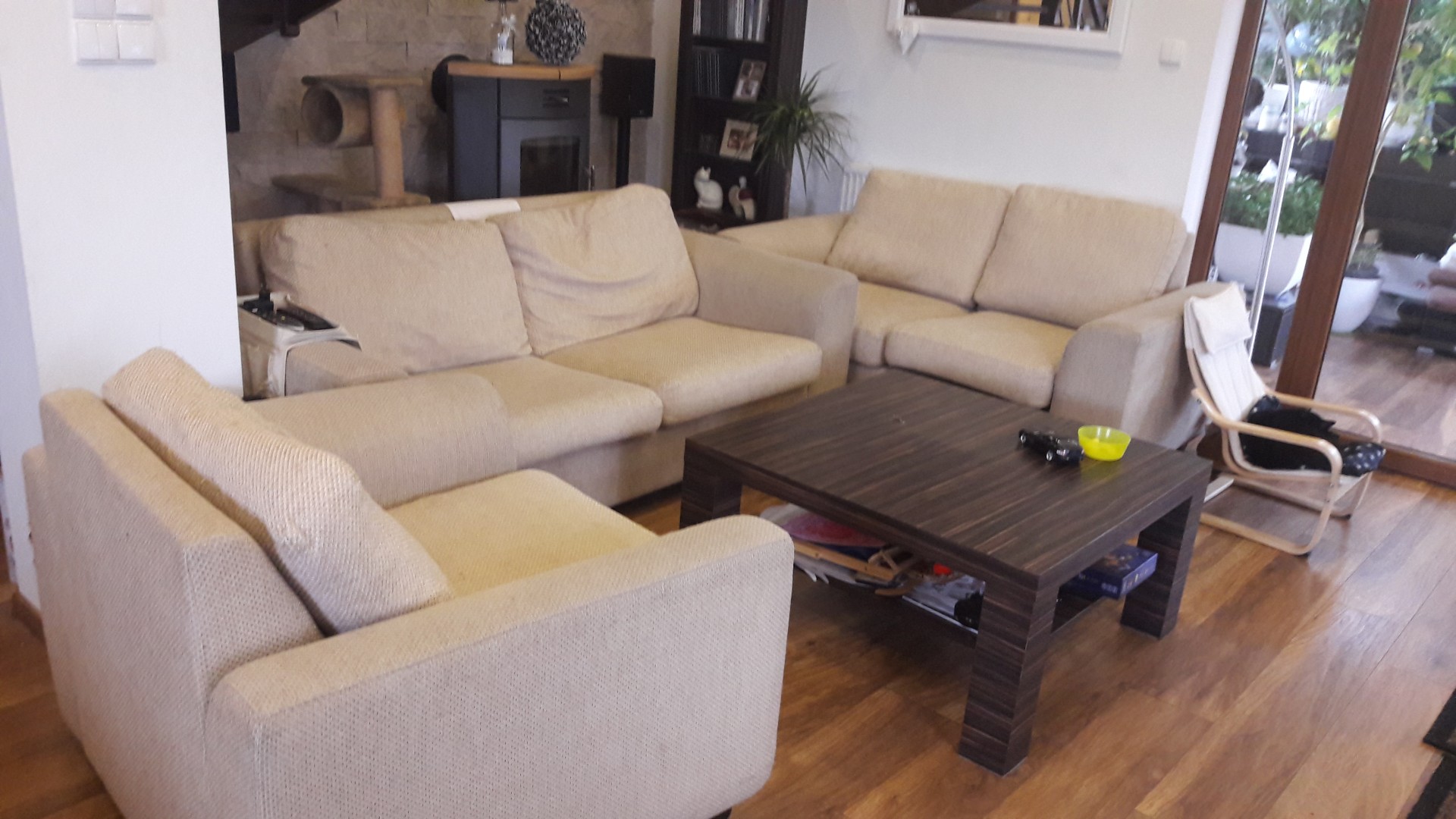 sprzedam sofę 3 osobową rozkładana +2 osobowa nierozkładana +fotel, poduszki na zamek możliwość zdejmowania do prania, nogi drewniane, stan używany-dobry-, zaciągnięcia materiału-prześle dodatkowe foto na telefon, zmechacenia, odbiór osobisty, pokrowce do odświeżenia, wymiary fotel szer 104, gł 90 wys 78,sofa 3 osob. szer 200, gł 90, wys 78sofa 2 osob. 165 cm , gł 90, wys 78pokrowce poduszek wyprane, boki do odświeżenia. Cena 1500 za komplet