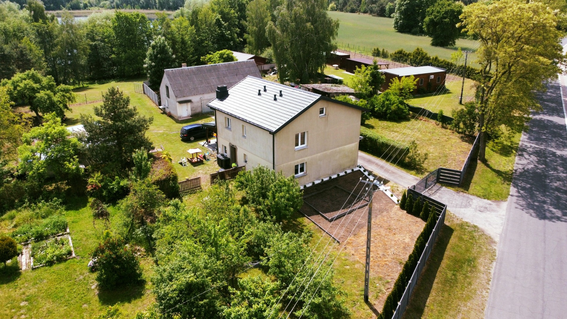 Unikalna oferta sprzedaży zabudowanej nieruchomości gruntowej z linią brzegową (około 60 metrów) jeziora wilczyńskiego. Urokliwa i niepowtarzalna działka o regularnym kształcie i łącznej powierzchni 51,00 ara, zabudowana wolnostojącym domem mieszkalnym, budynkiem gospodarczo/garażowym, trzystanowiskowym garażem blaszanym oraz dwoma domkami letniskowymi. Działka płaska, zagospodarowana (liczne nasadzenia, drzewa i krzewy ozdobne, drzewa owocowe), monitoring, ogrodzenie z siatki, front betonowy. Nieruchomość zlokalizowana w pobliżu centrum Wilczyna, wśród terenów rekreacyjnych, lasów, jezior: wilczyńskie i suszewskie oraz zabudowy jednorodzinnej, zagrodowej i letniskowej. Cicha, spokojna i urokliwa okolica o niepowtarzalnych walorach przyrodniczych, ciekawa lokalizacja nieruchomości oraz idealna komunikacja to bez wątpienia główne zalety nieruchomości. Do centrum Wilczyna około 5 km (szkoła podstawowa, przedszkole, żłobki, plac zabaw, boisko sportowe, sklepy, markety, przychodnia, apteka, poczta, banki, obiekty usługowe, inne obiekty użyteczności publicznej) , Powidz 18 km, Kleczew 20 km, Ślesin 24 km. Budynek mieszkalny dwukondygnacyjny ze strychem oraz z zadaszonym tarasem i balkonem w zabudowie wolnostojącej pobudowany w technologii tradycyjnej w latach 80-tych z generalnym remontem środka w 2023 roku. Dom murowany z pustaka z delatacją, ocieplony styropianem 10 cm oraz tynk mineralny, fundament żelbetowy, okna PCV trzyszybowe. Dach konstrukcji drewnianej kryty blachą modułową. Funkcjonalny układ pomieszczeń: Parter: jasna, przestronna w pełni wyposażona i umeblowana kuchnia, salon, jadalnia, łazienka z prysznicem, wiatrołap, korytarz oraz kotłownia. Piętro: klatka schodowa, korytarz, garderoba, trzy sypialnie oraz przestronna i jasna łazienka z wanną i prysznicem. Standard wykończenia: na podłogach terakota, panele, ściany tynk cementowo-wapienny i pomalowane, glazura. Ogrzewanie: piec na ekogroszek, zmiękczacz wody w sypialni zainstalowana klimatyzacja. Dodatkowo