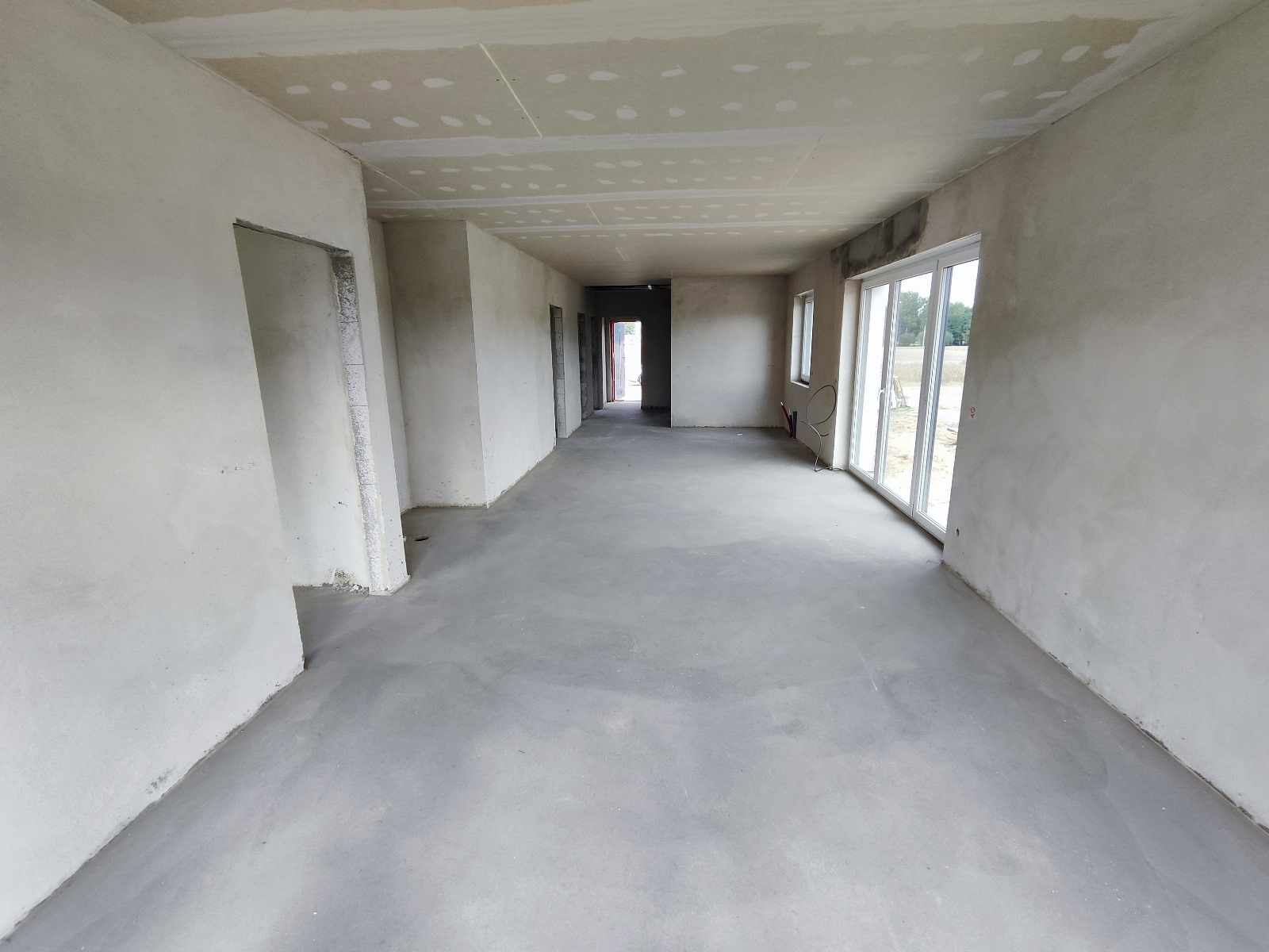 * Salon z aneksem kuchennym i jadalnią, 3 pokoje, 2 łazienki, kotłownia, spiżarnia, przedpokój, wiatrołap